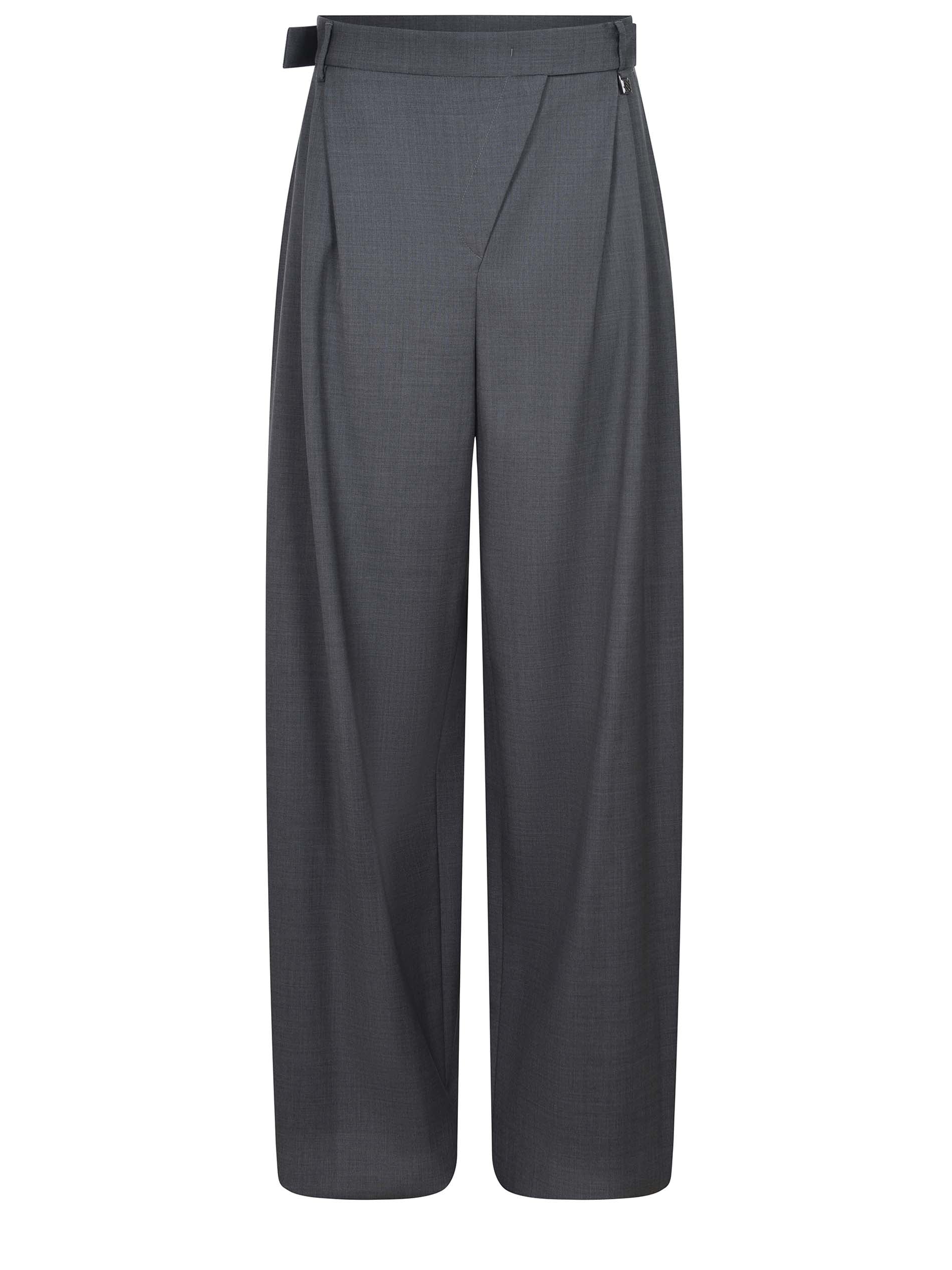 Pantalon Giuseppe di Morabito en laine grise. Boucle de ceinture à la taille. Fléchettes à l'avant. Étiquette de logo en métal latéral. Close asymétrique avec bouton et zip. Poches latérales. Poutes de soulagement à l'arrière. Laine 100% vierge. Fabriqué en Italie.