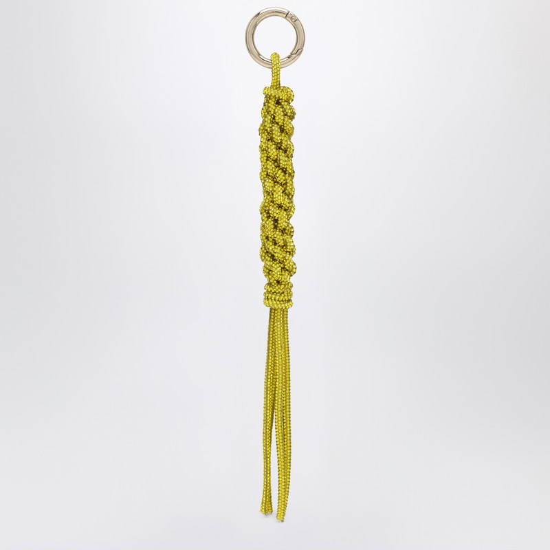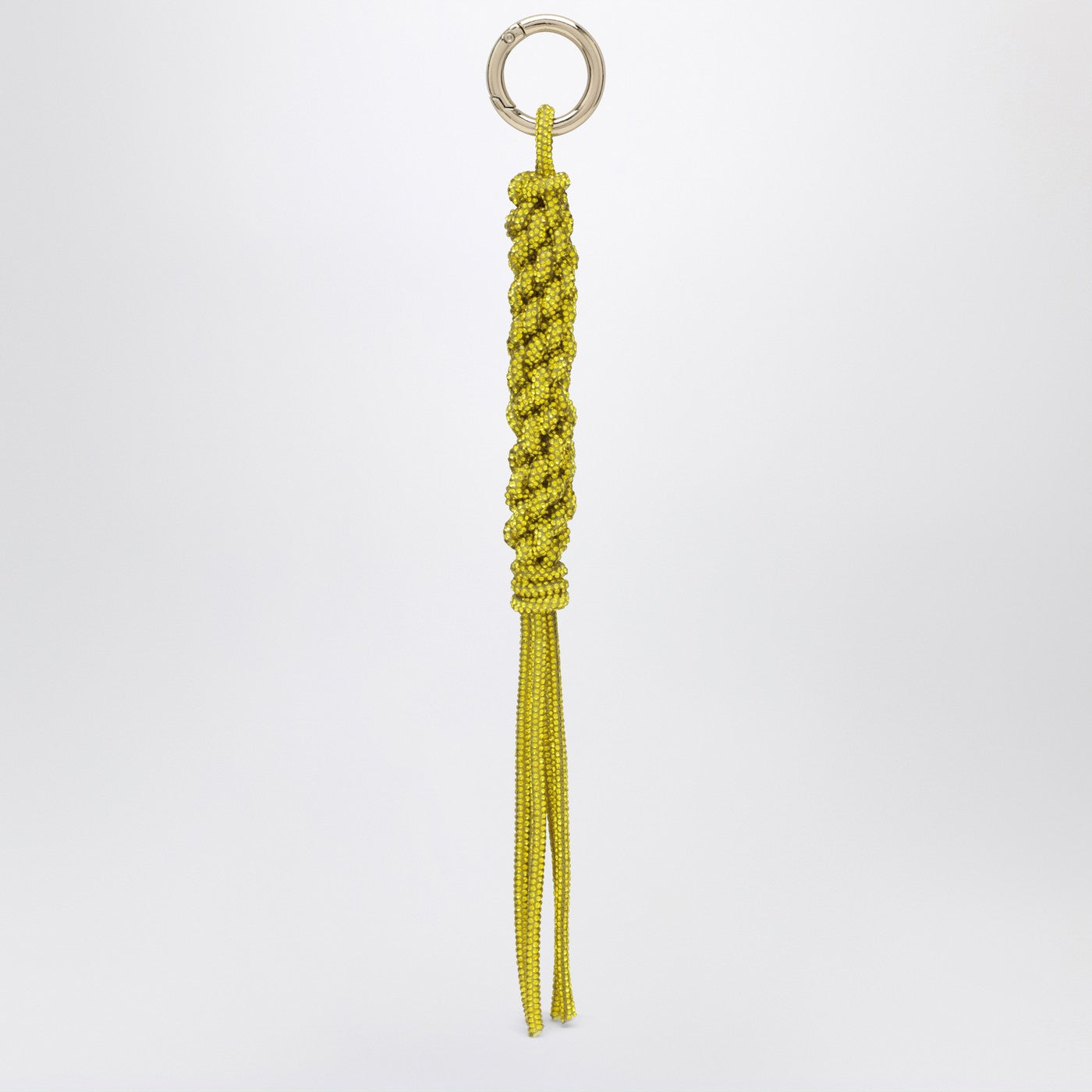 Breloque Hibourama avec pendentif tissé à la main recouvert de cristaux jaunes et fermoir anneau en métal.