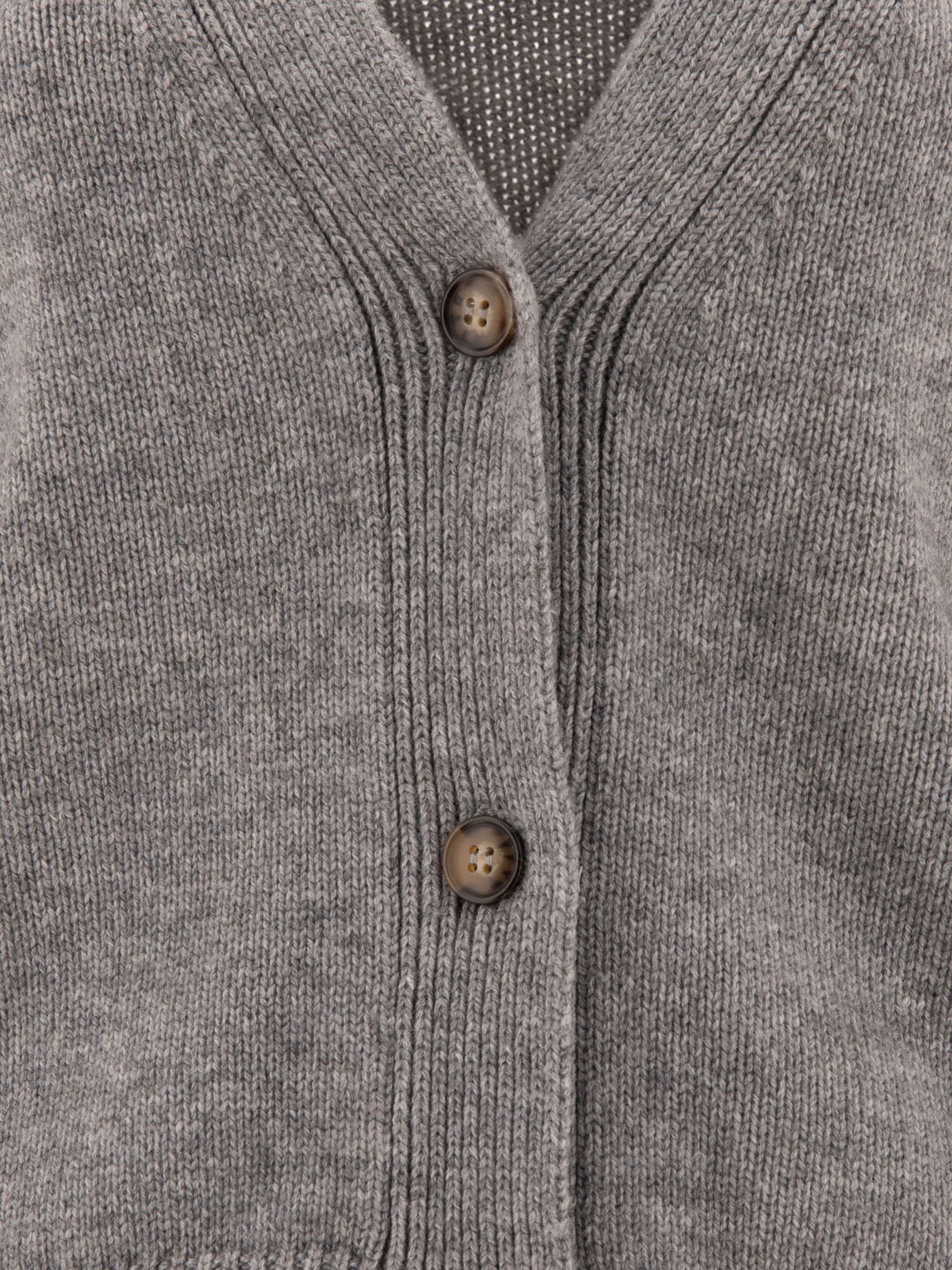 Loulou Studio 's Le cardigan "Zanzibar" est un essentiel pour toute femme "s garde-robe. Fabriqué à partir d'un mélange de laine et de cachemire doux, il offre un ajustement lâche avec des épaules tombées, idéales pour un look riche enveloppant. La fermeture avant à trois bouts et la coque brodée ajoutent des détails distinctifs à ce classique de la collection de studio Loulou. || - ajustement détendu - Ligne en V - Clôture avant du bouton - poignets côtelés et ourlet - Couleur unie - Manches longues || Pour un look chic et polyvalent, associez le cardigan "Zanzibar" avec des jeans de petit ami et des baskets blanches. Pour une touche plus élégante, vous pouvez opter pour une jupe plissée longue et des bottines en cuir. Complétez votre tenue avec un sac à bandoulière et des accessoires minimalistes pour un look moderne et raffiné.