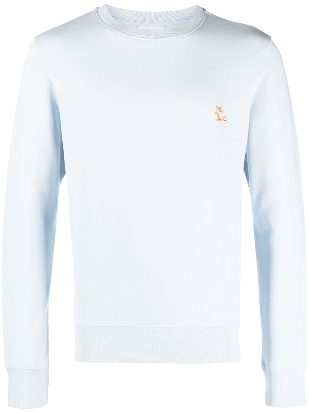 Chillax Fox-motif coton sweat-shirt de Maison Kitsuné avec bleu clair, coton, construction tricotée, motif de renard chillax signature, patch de logo à la poitrine, cou de l'équipage, manches longues et poignets côtelés et ourlet.