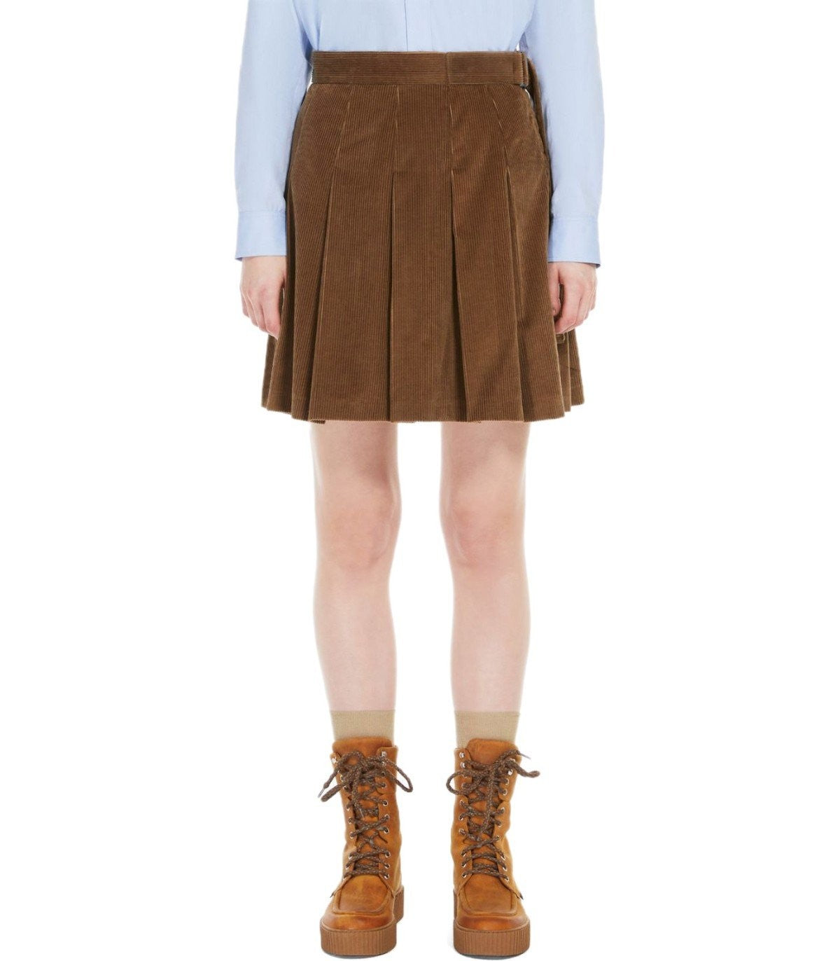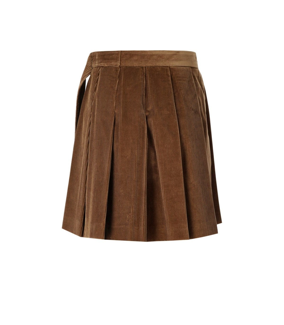 Max Mara Weekend Pumpkin Mini jupe en velours de coton de cinquante coton de couleur noisette. Caractérisé par une ligne légèrement évasée, il présente un motif plissé. Clôture avec une fermeture éclair invisible sur le côté gauche. Ceinture cousue ornée d'une boucle d'anneau. Modèle doublé. Ajustement généreux. Composition: 100% tissu de coton; Doublage 100% polyester.