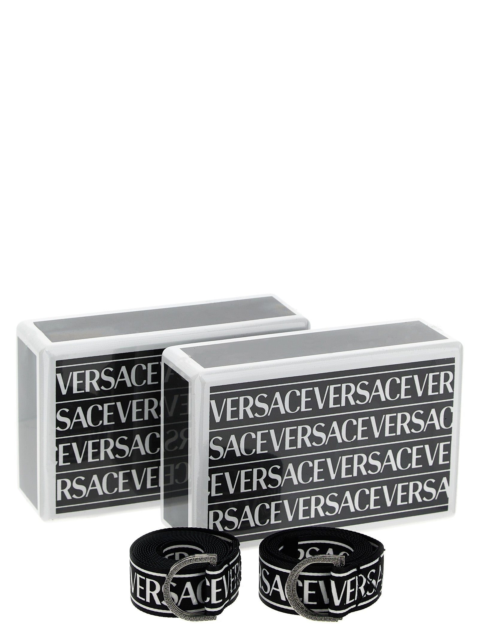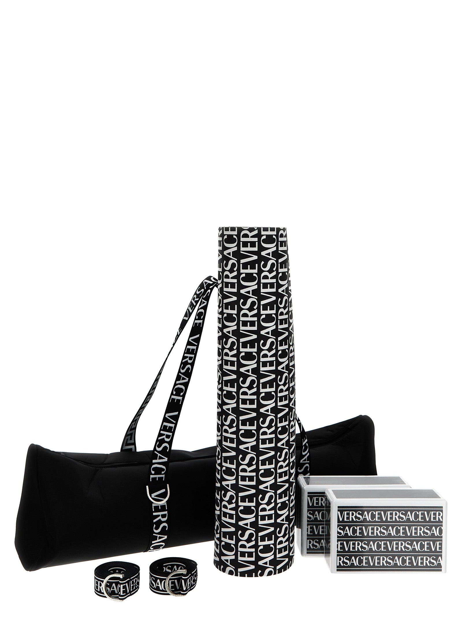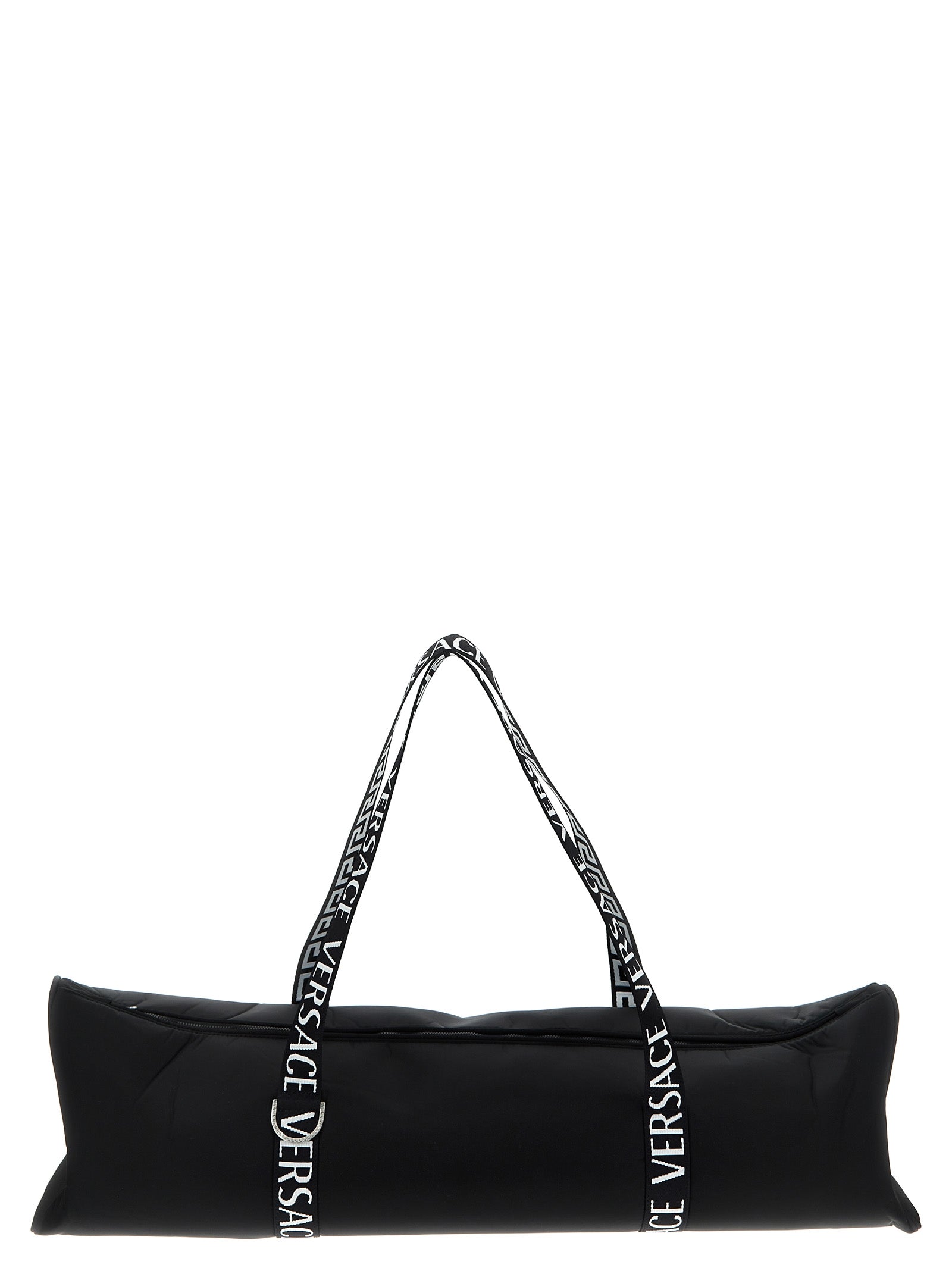 Versace Allover Nylon Duffel Sac avec tapis de yoga, deux blocs et deux sangles à l'intérieur.