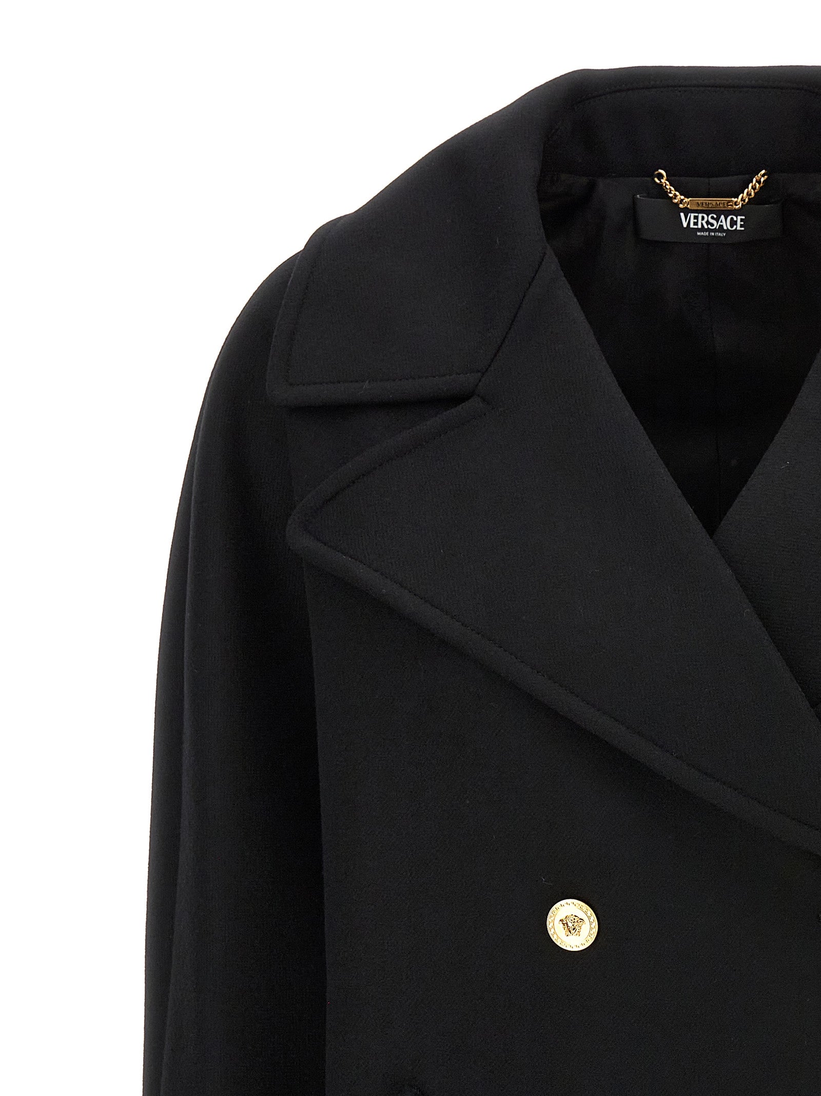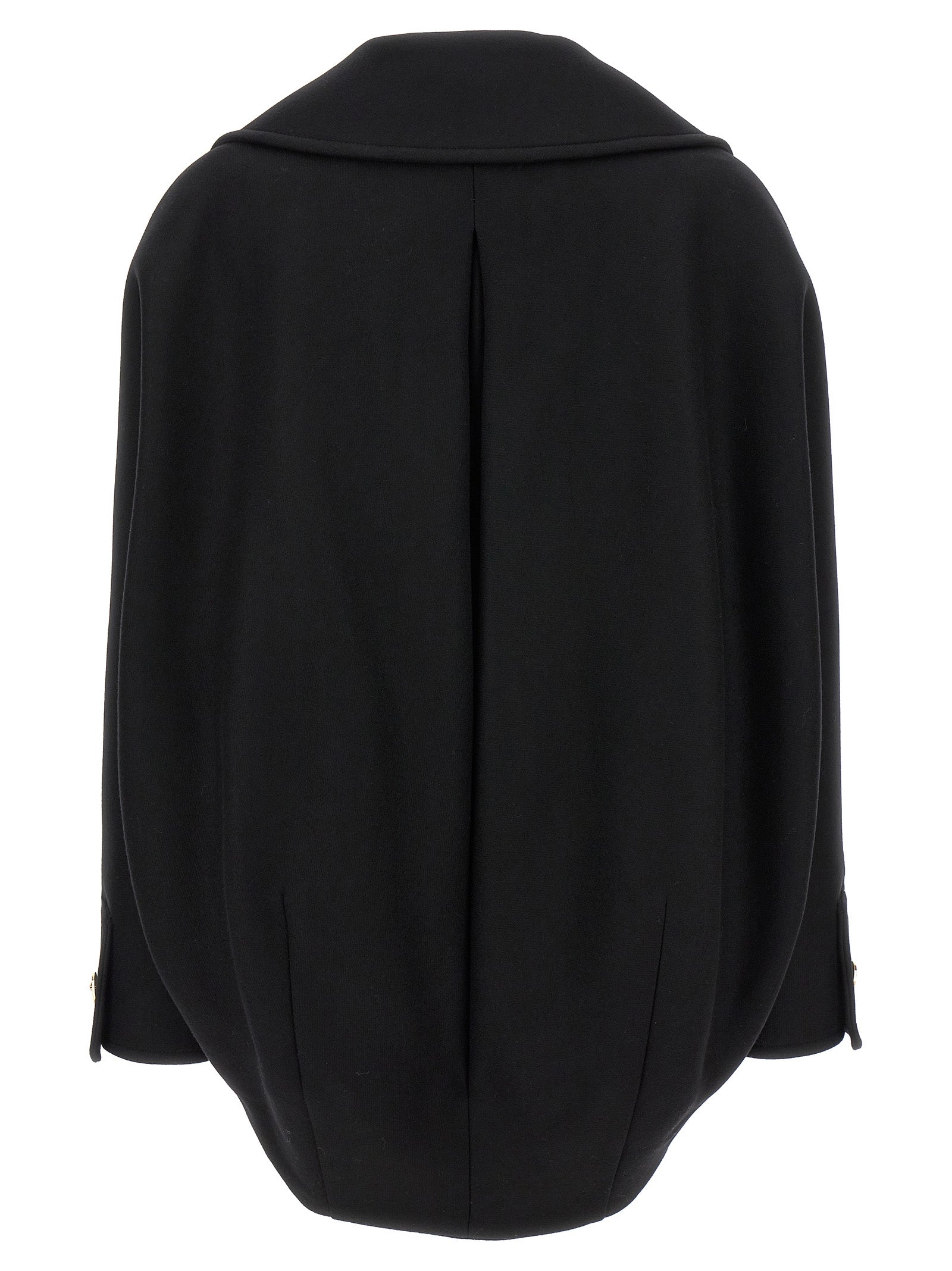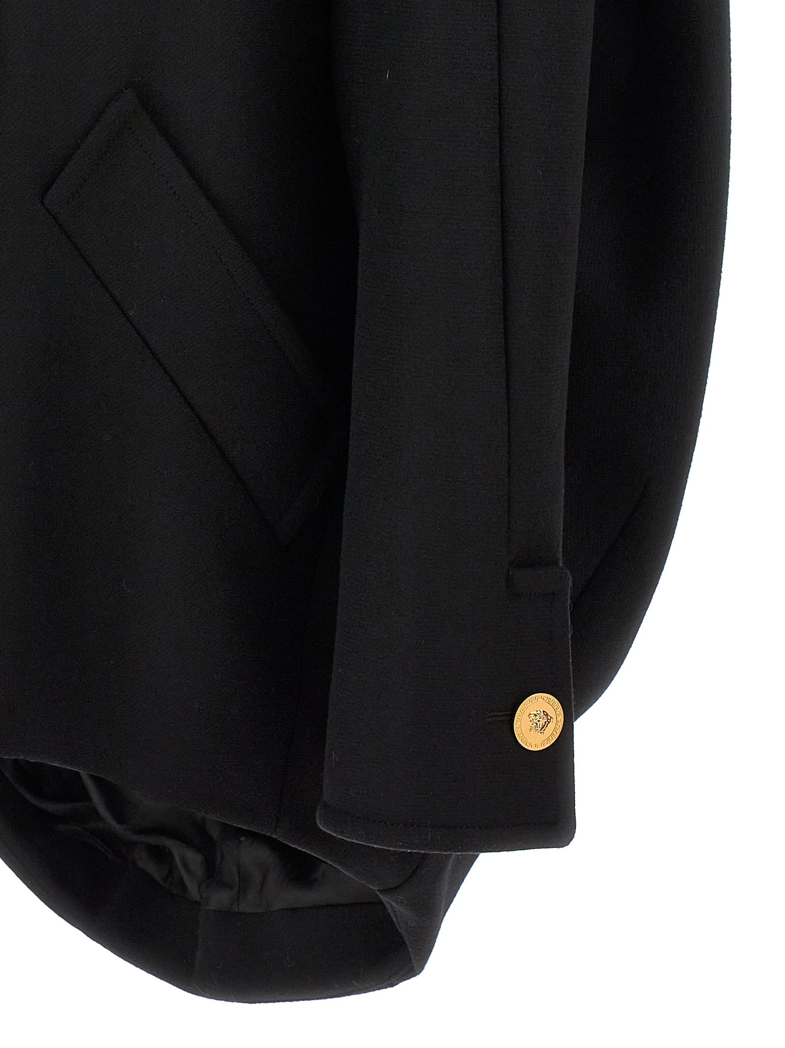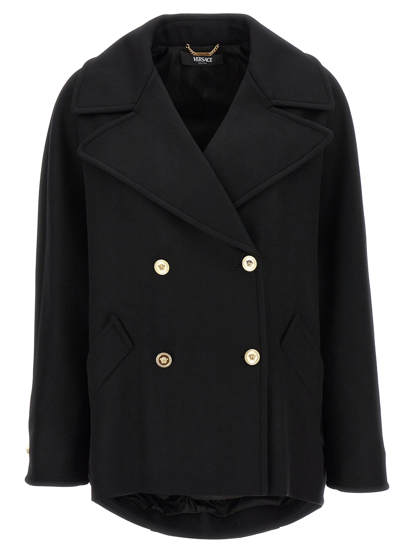 Cocoon cocoon à double poitrine dans le mélange de laine avec fermeture de bouton «Medusa», poches, manches longues.
