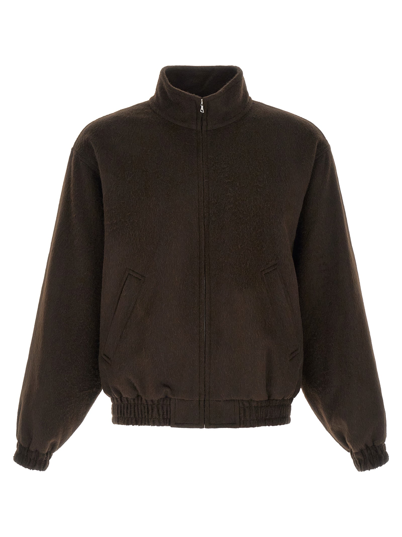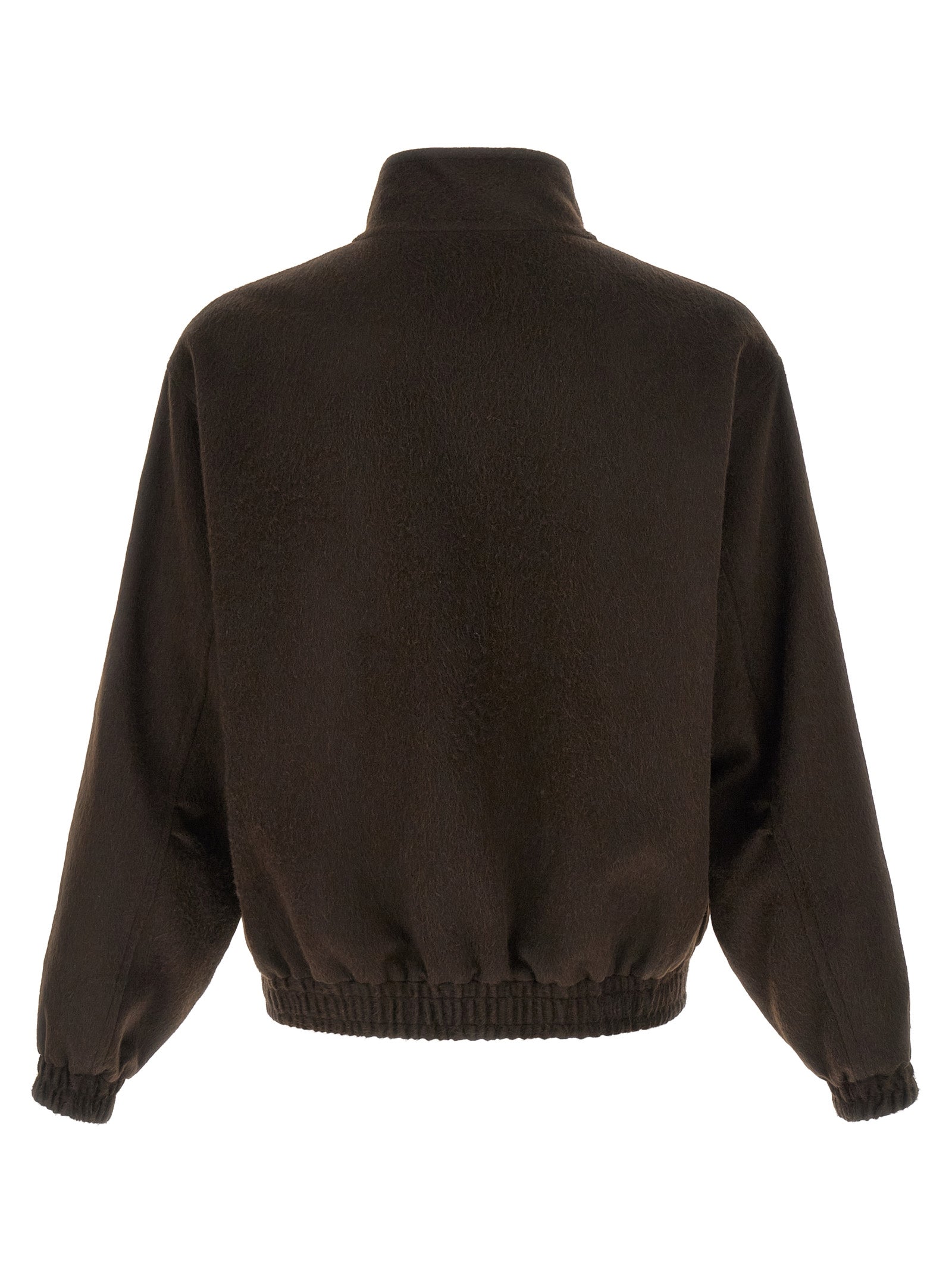 Bomber en flanelle bébé camel brossé, fermeture zippée sur le devant, col montant, poches, manches longues avec poignets et épaules descendues élastiqués, bas élastique.