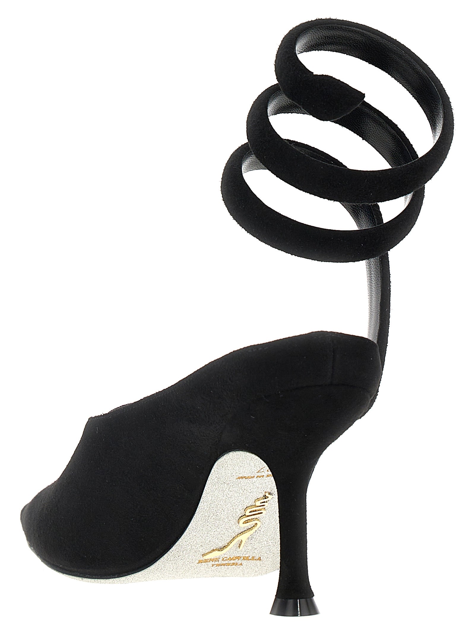 Les mules en daim de Grace avec des détails de serpent se tordièrent autour de la cheville, du talon.