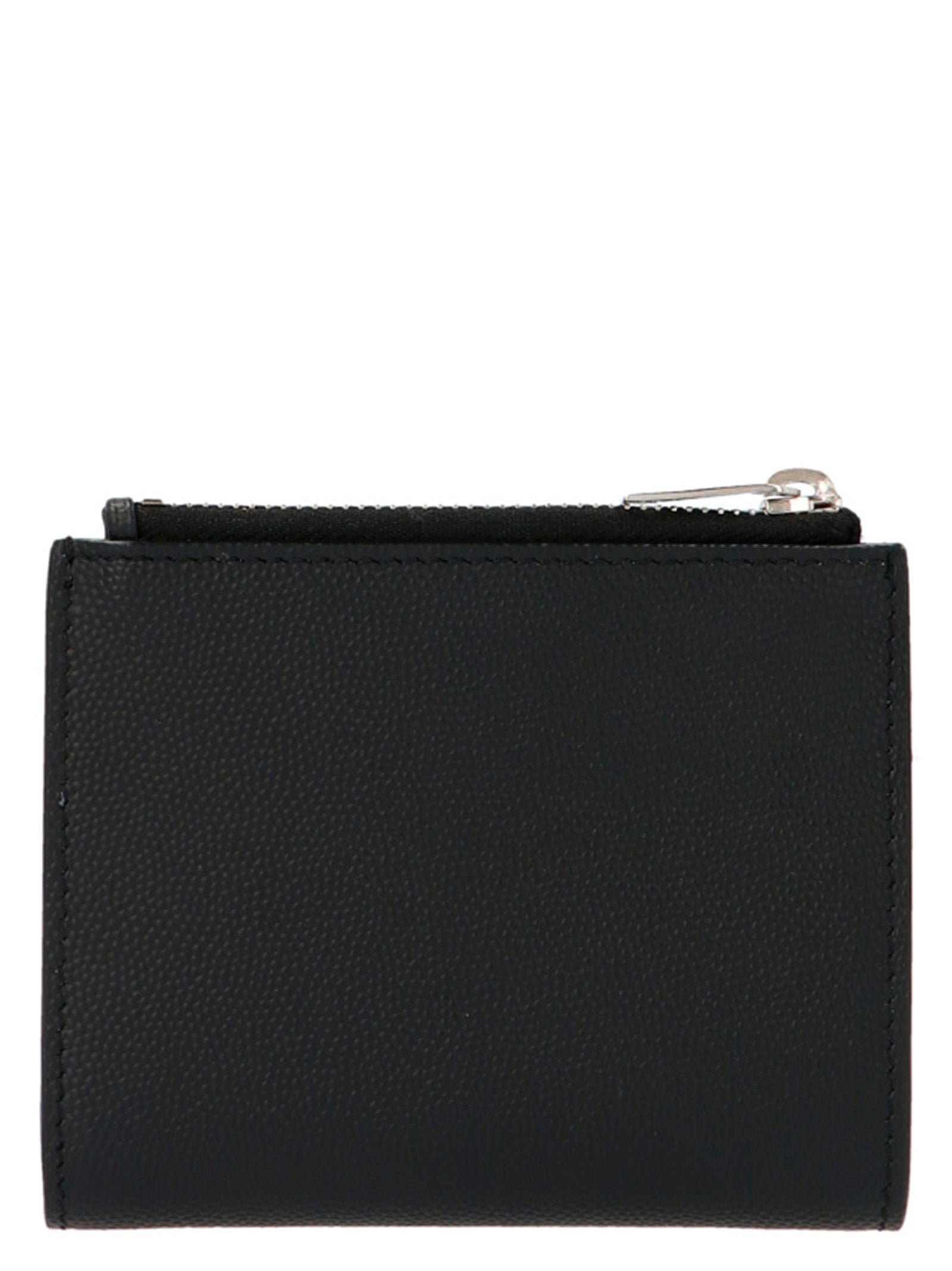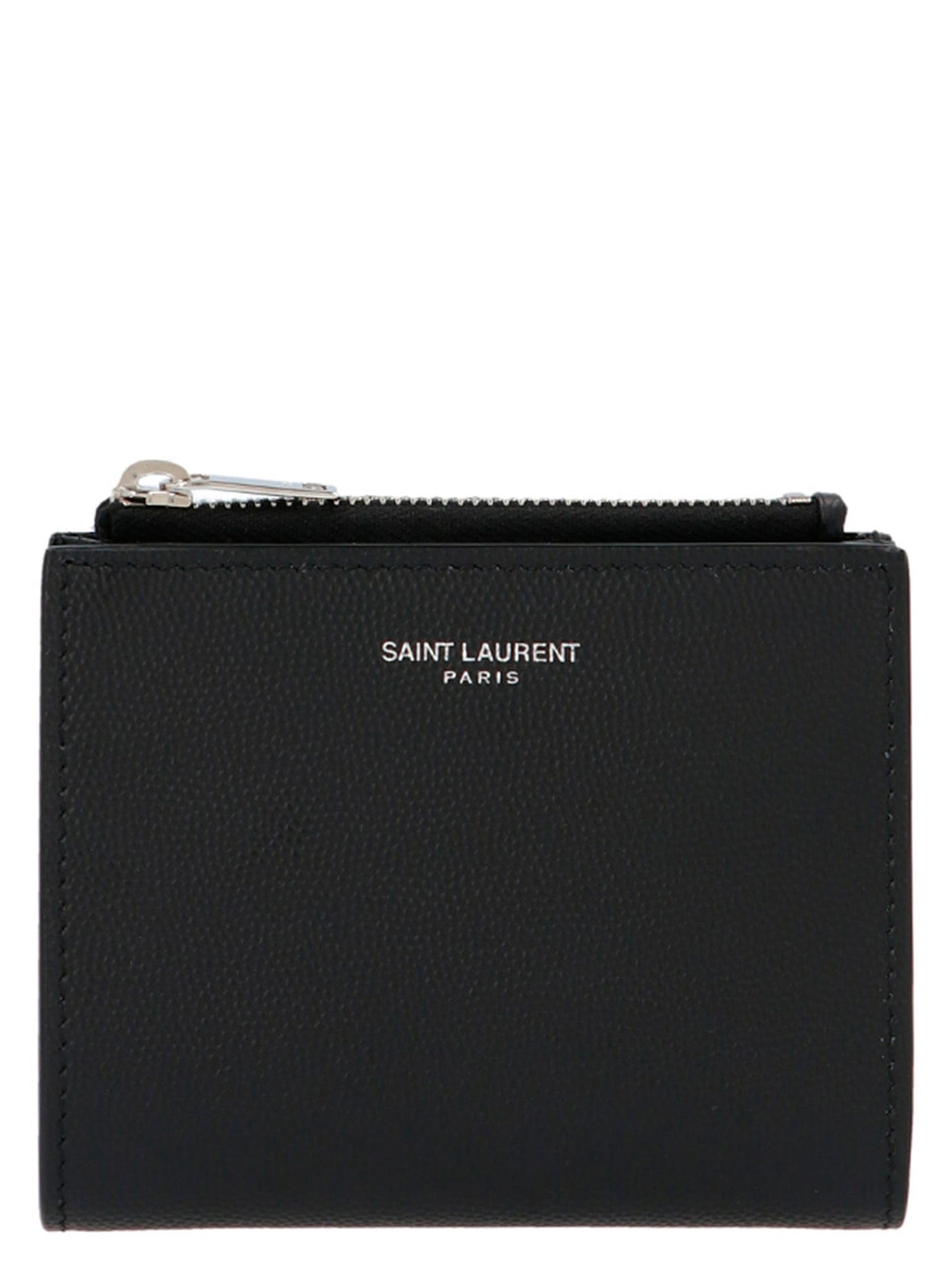 Grain de Poudre Le support de carte en cuir avec imprimé de logo avant, fermeture éclair et fermeture de bouton.
