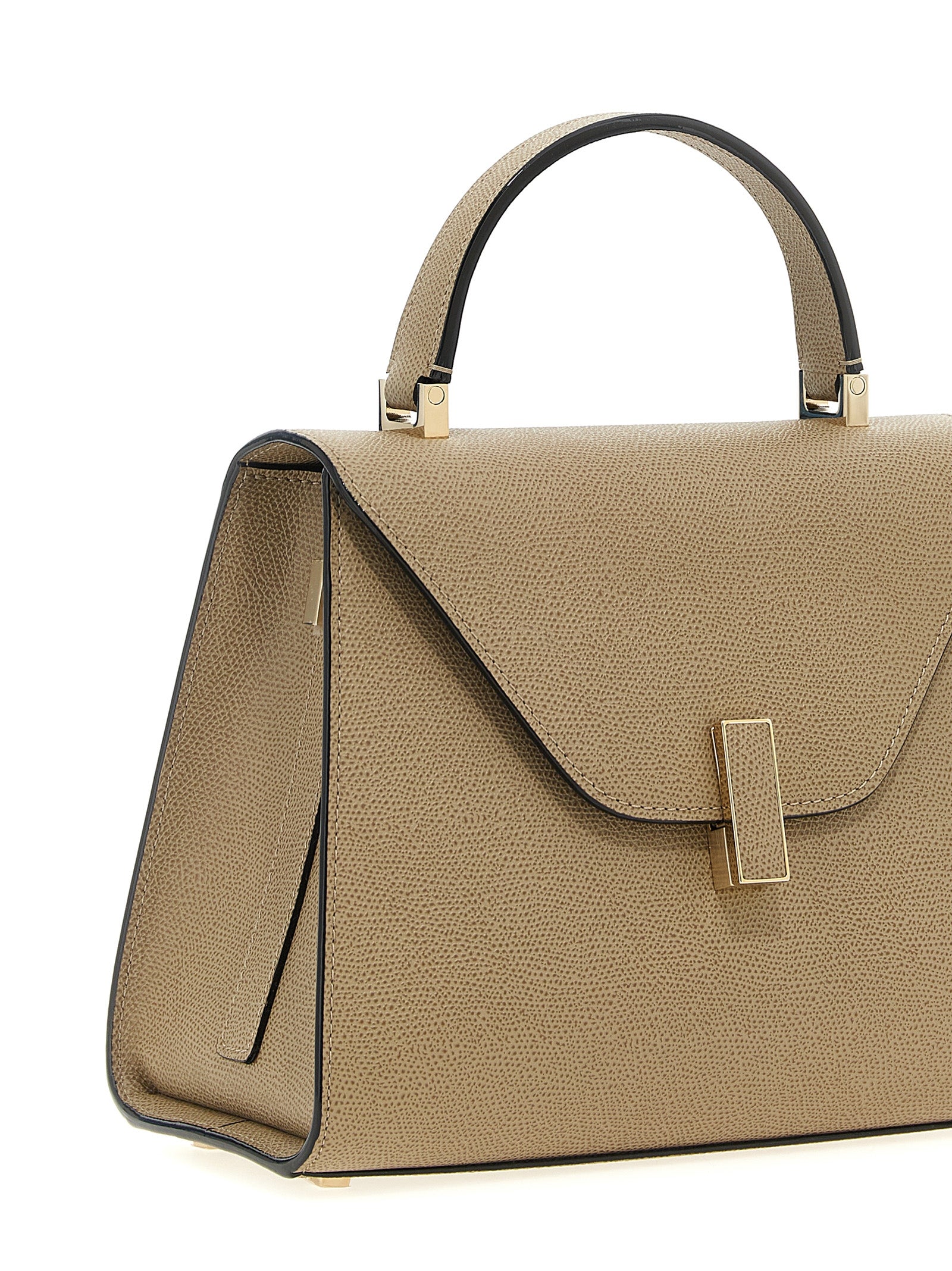 Sac à main moyen 'ISIDE' en cuir de mollet millepunte, tuyauterie Costa Valextra, poignée fixe, fermeture du rabat, détails en métal, bandoulière réglable et amovible.