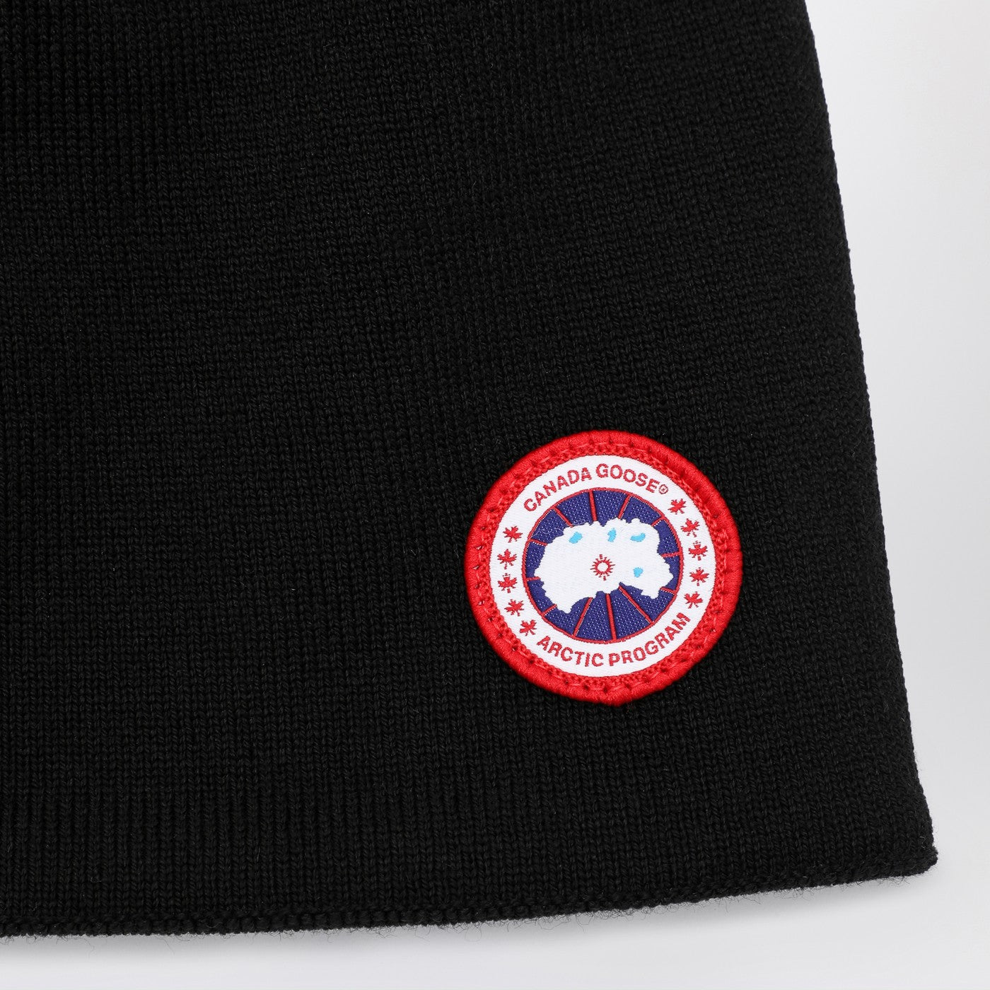 Chapeau de l'oie du Canada en tricot-mélange en laine noire, avec patch de logo cousu sur le devant.