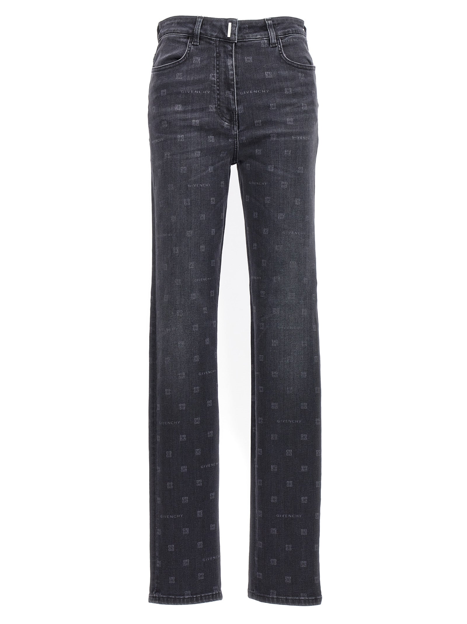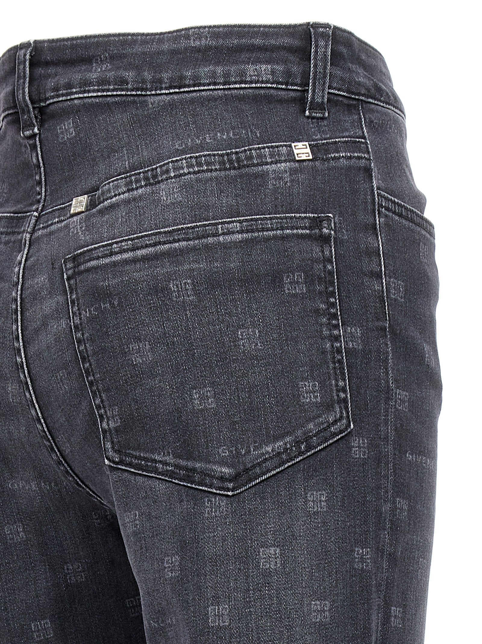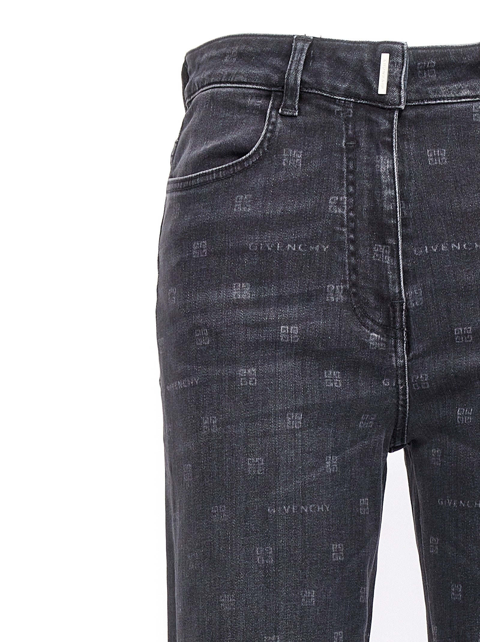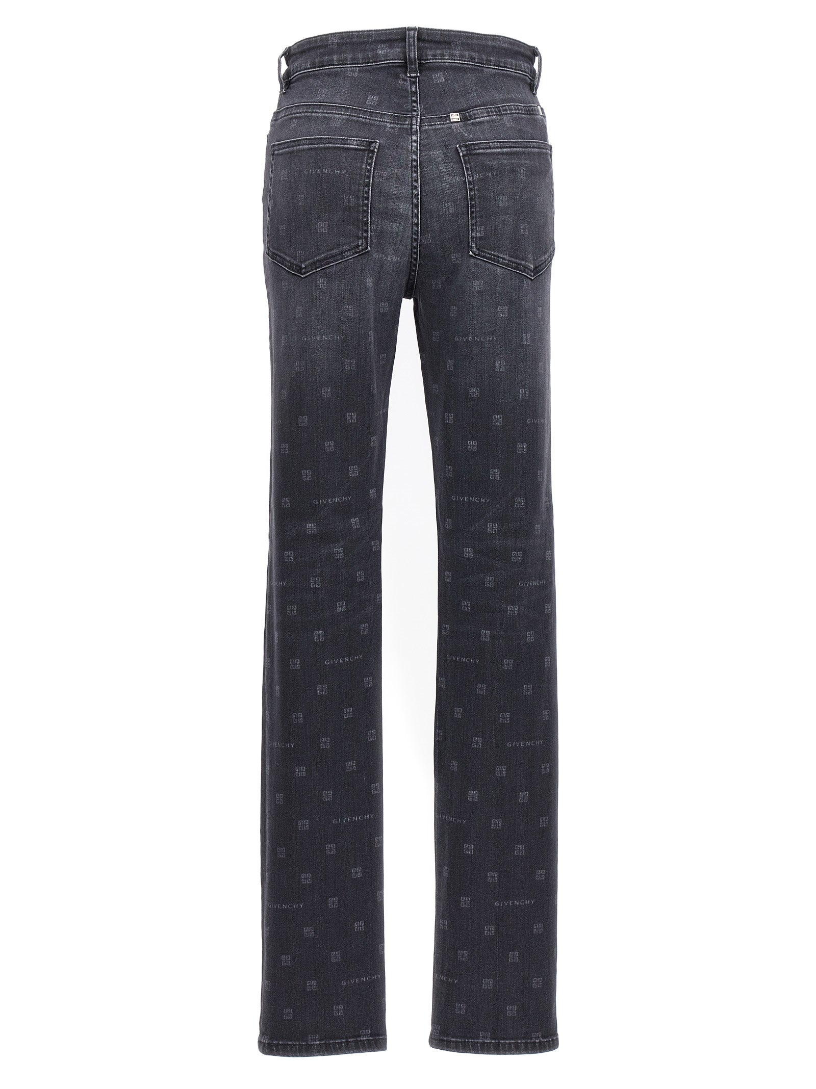 Jean en denim en coton extensible avec imprimé de logo, zip à crochet et bouton, patch de logo en métal et poches.