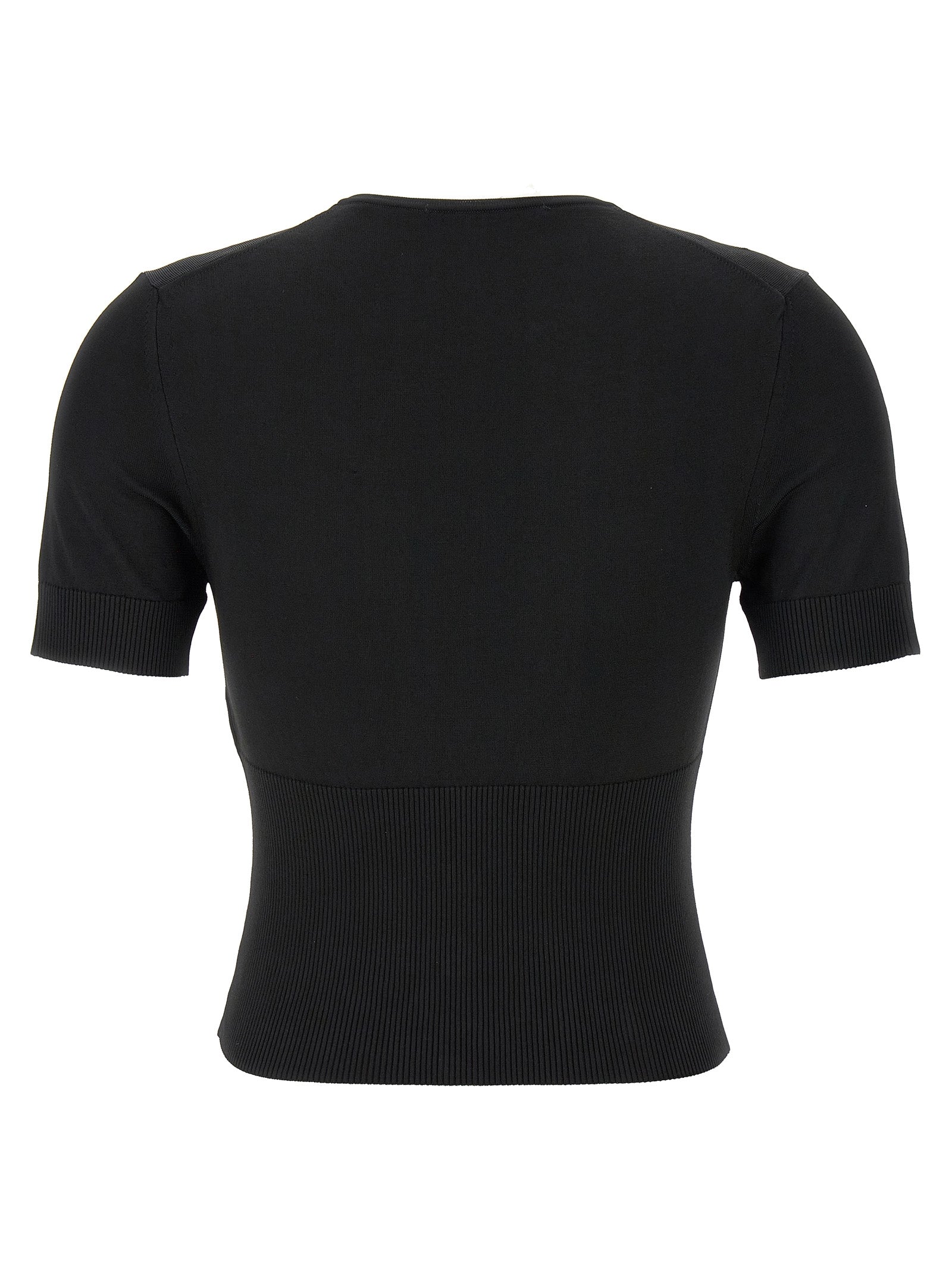 Le pull de mélange viscose côtelé de «Le Haut Pralu MC», le col en V avec des détails de logo en métal, des boutons sur l'ourlet et des manches courtes.