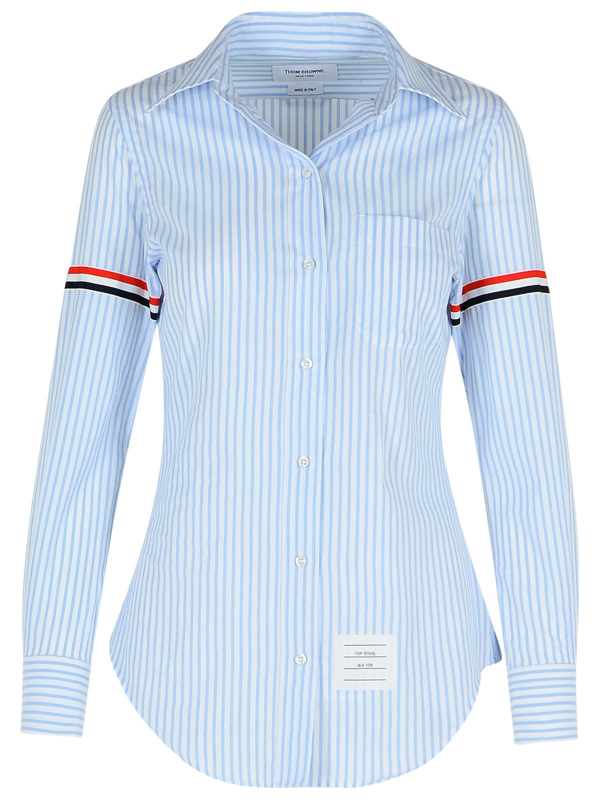 Collier pointu avec boutons, fermeture de bouton, motifs à rayures à contraste, poche avant, motifs tricolores sur les manches, étiquette de logo de contraste, ourlet légèrement évasé, menottes finies avec des boutons