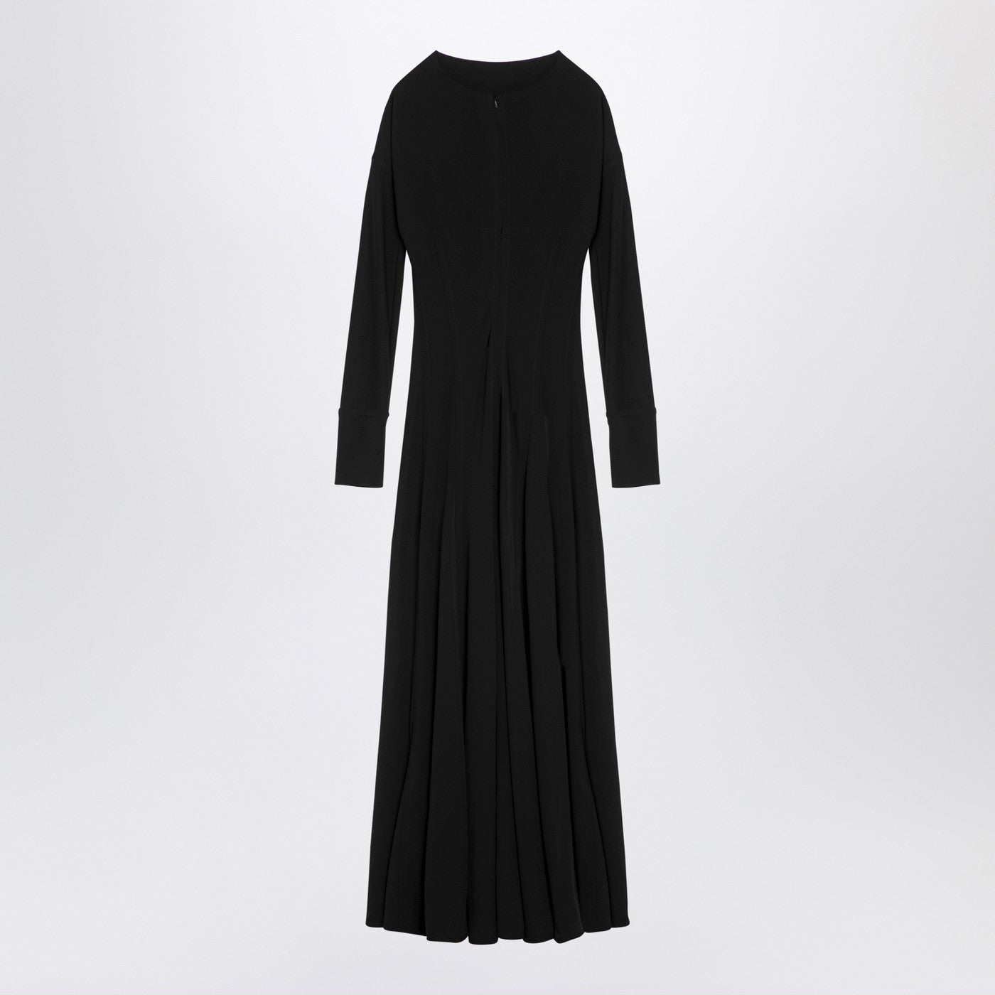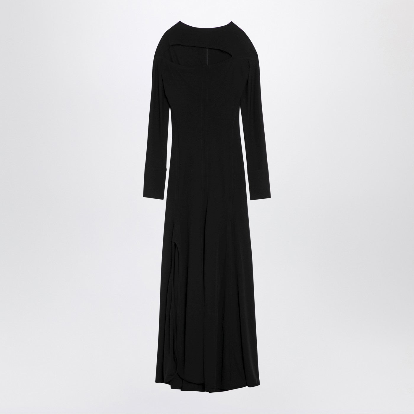 La robe à viscose noire de Victoria Beckham propose des manches longues, de la coupe avant, une fente avant et une fermeture à glissière arrière.