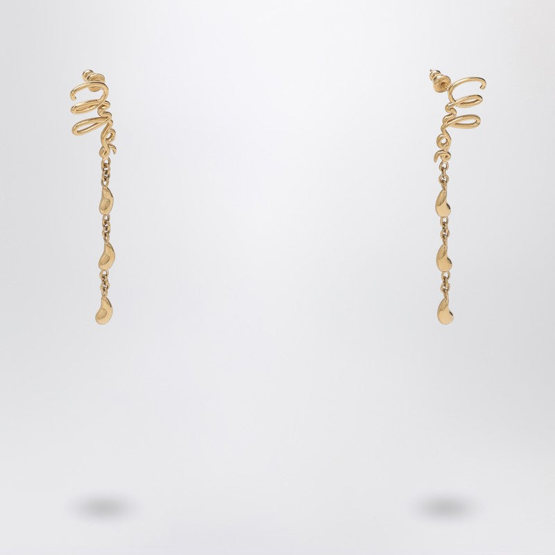 Chloé Boucles d'oreilles pendantes en laiton avec une finition en or avec un logo gravé, adapté aux lobes percés.