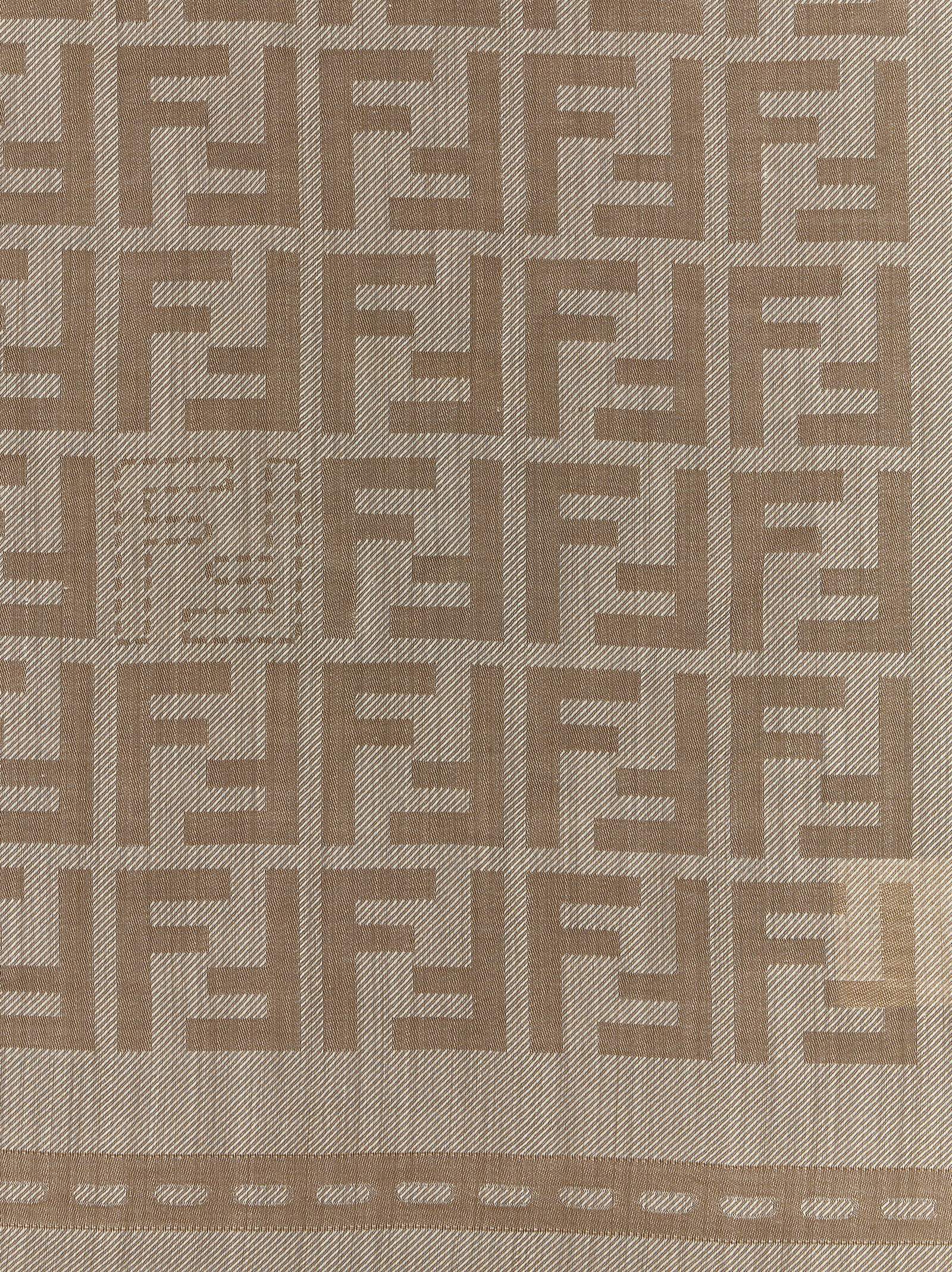 Châle de laine ultra-léger All-Over FF Logo Jacquard Fabricanisme, bords effilochés.