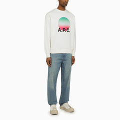 Sweat-shirt de Crewneck par A.P.C. En coton blanc avec une impression verte et rouge fanée avec un logo à l'avant, des manches longues, un ourlet côtelé et des poignets.