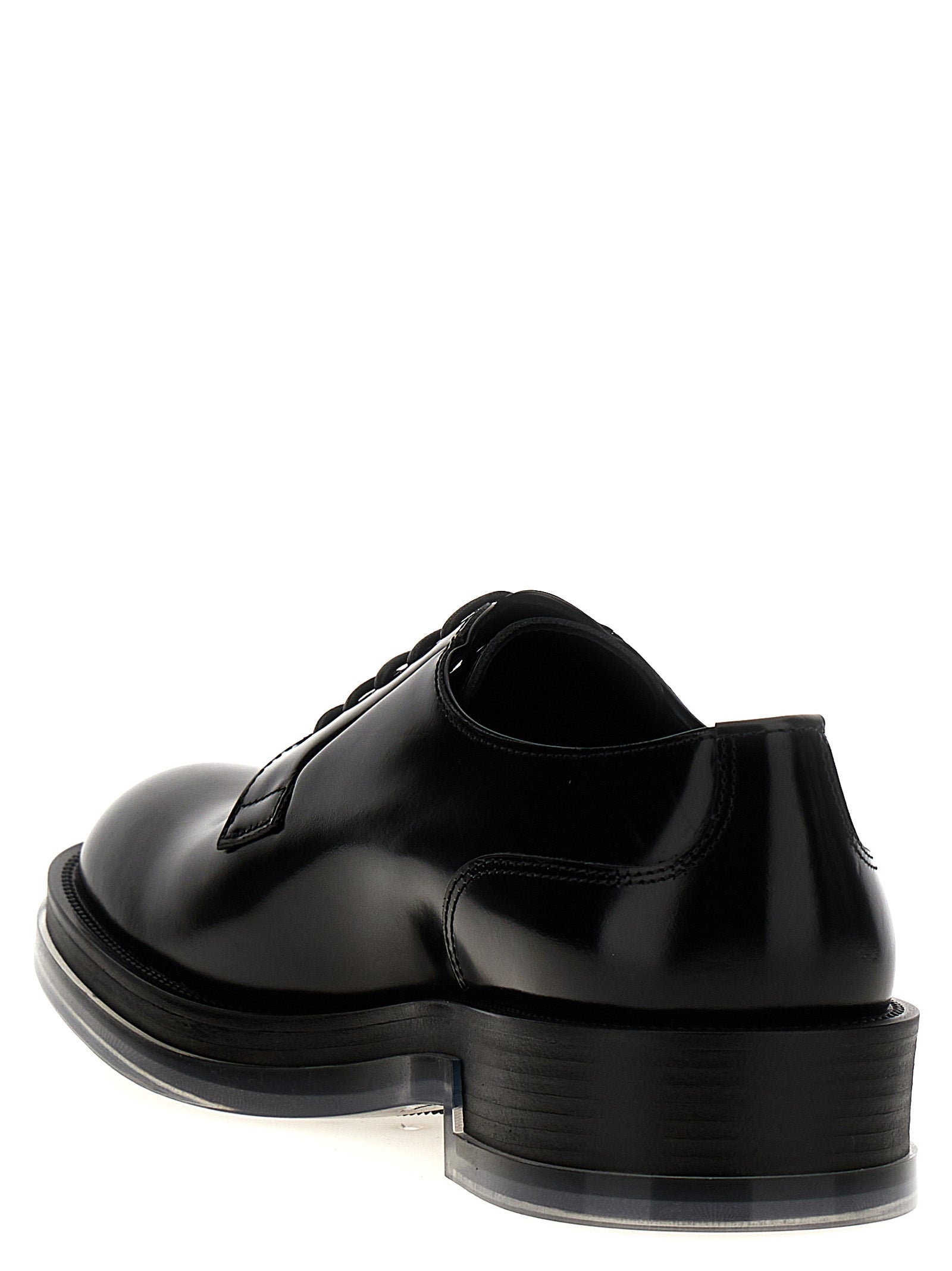 Des chaussures à lacets en cuir lisse en cuir avec une semelle transparente.