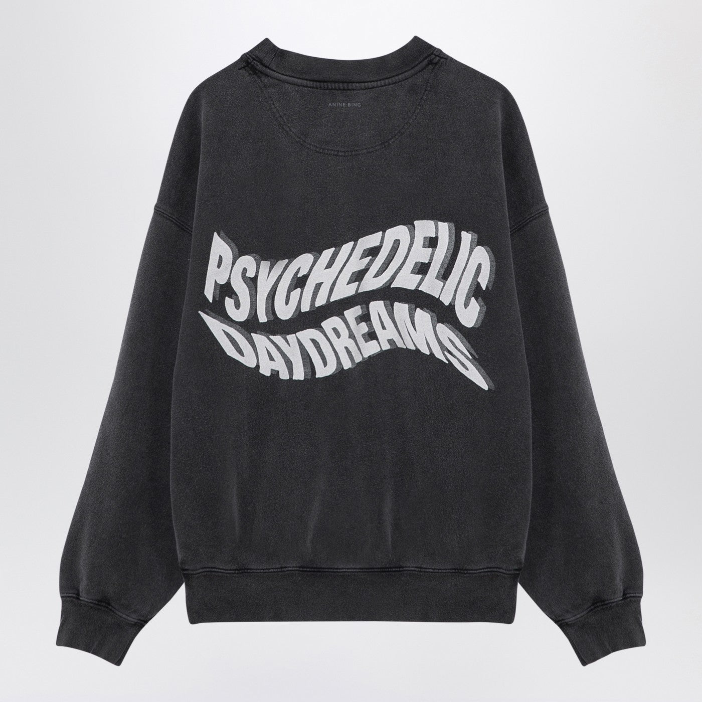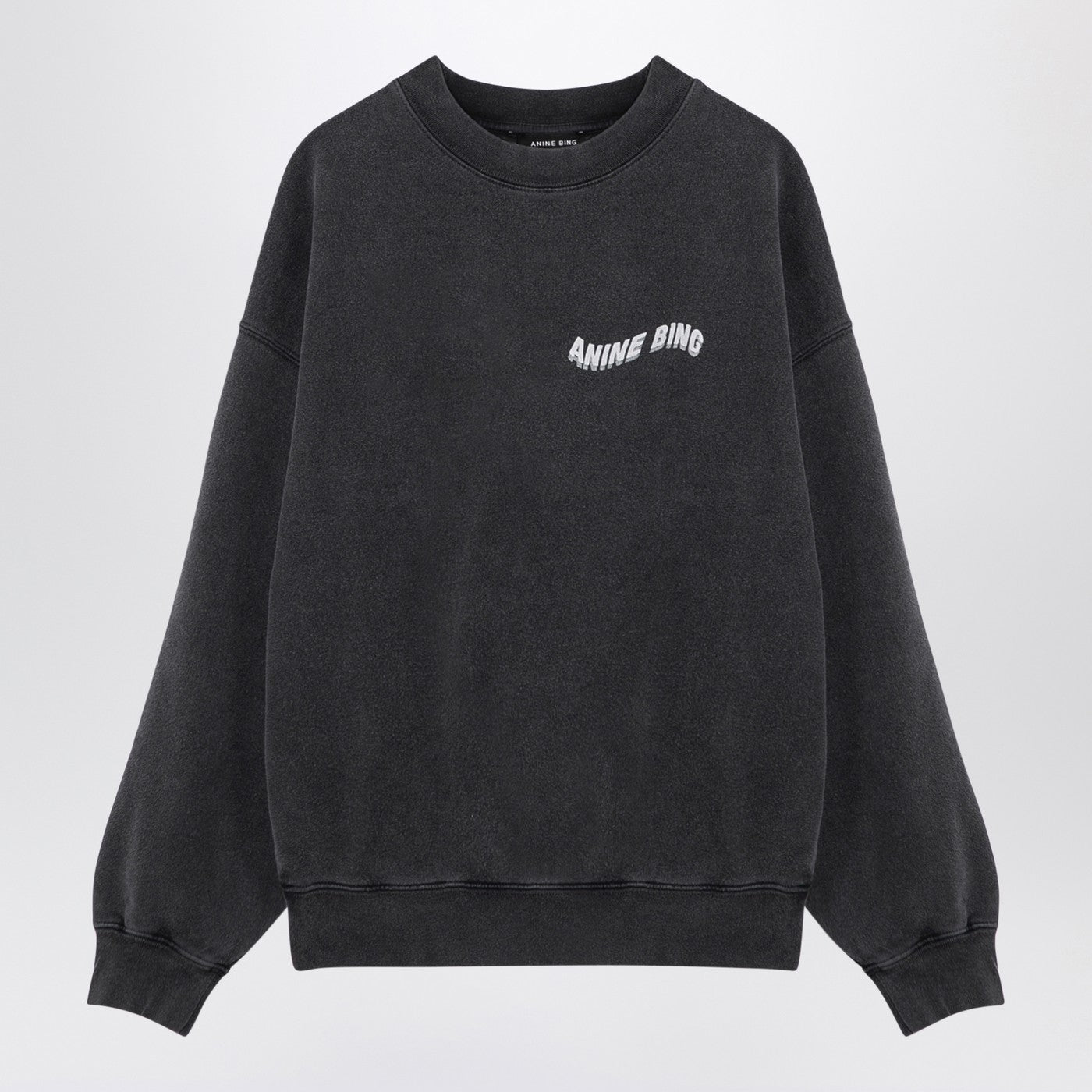 Sweat-shirt de monsets de couches en coton lavé noir par Anine Bing, dispose d'une impression de logo de lettrage contrastée sur la poitrine, d'une imprimé arrière, de manches longues avec des épaules basses et des poignets côtelés et de l'ourlet.