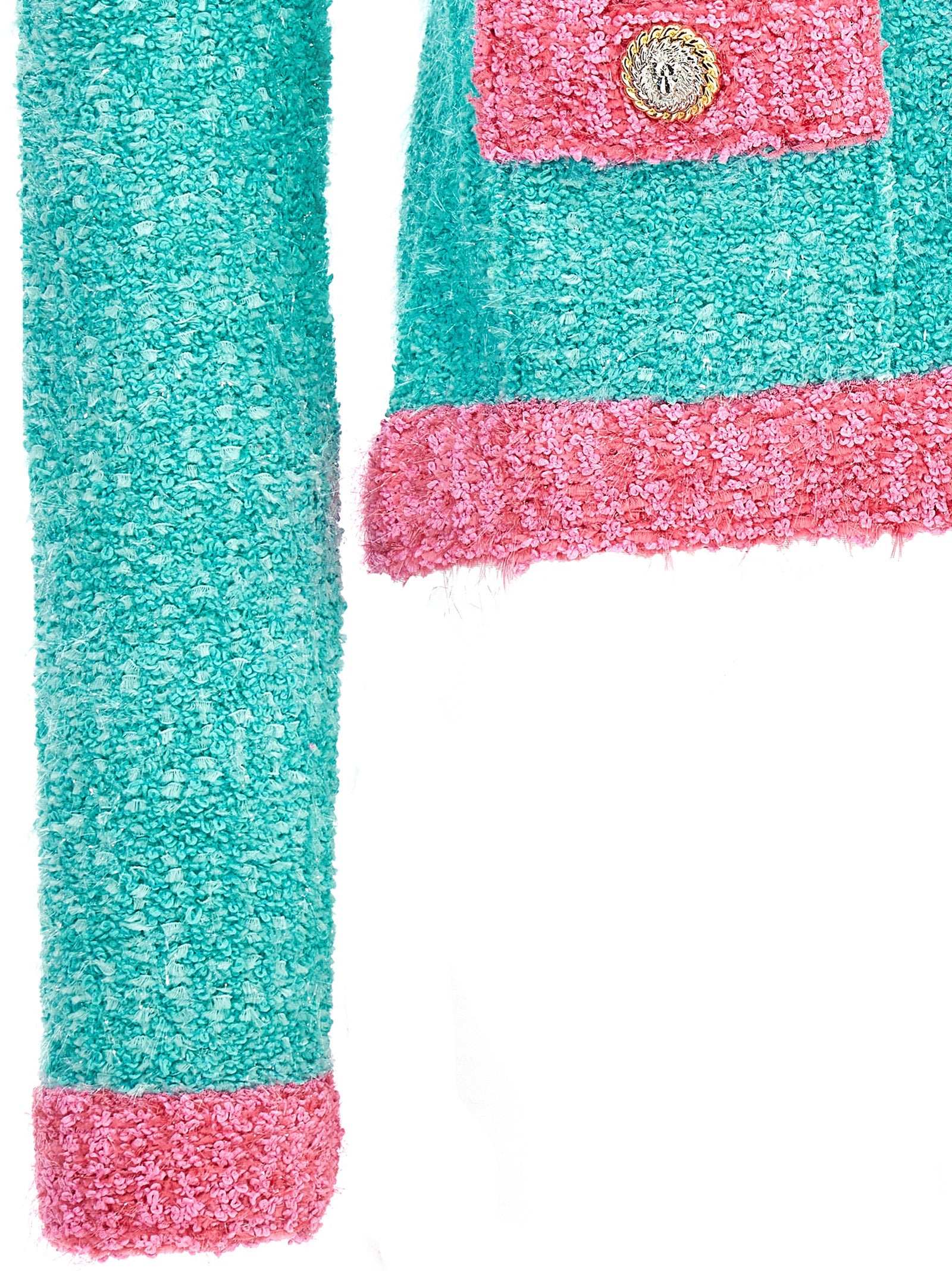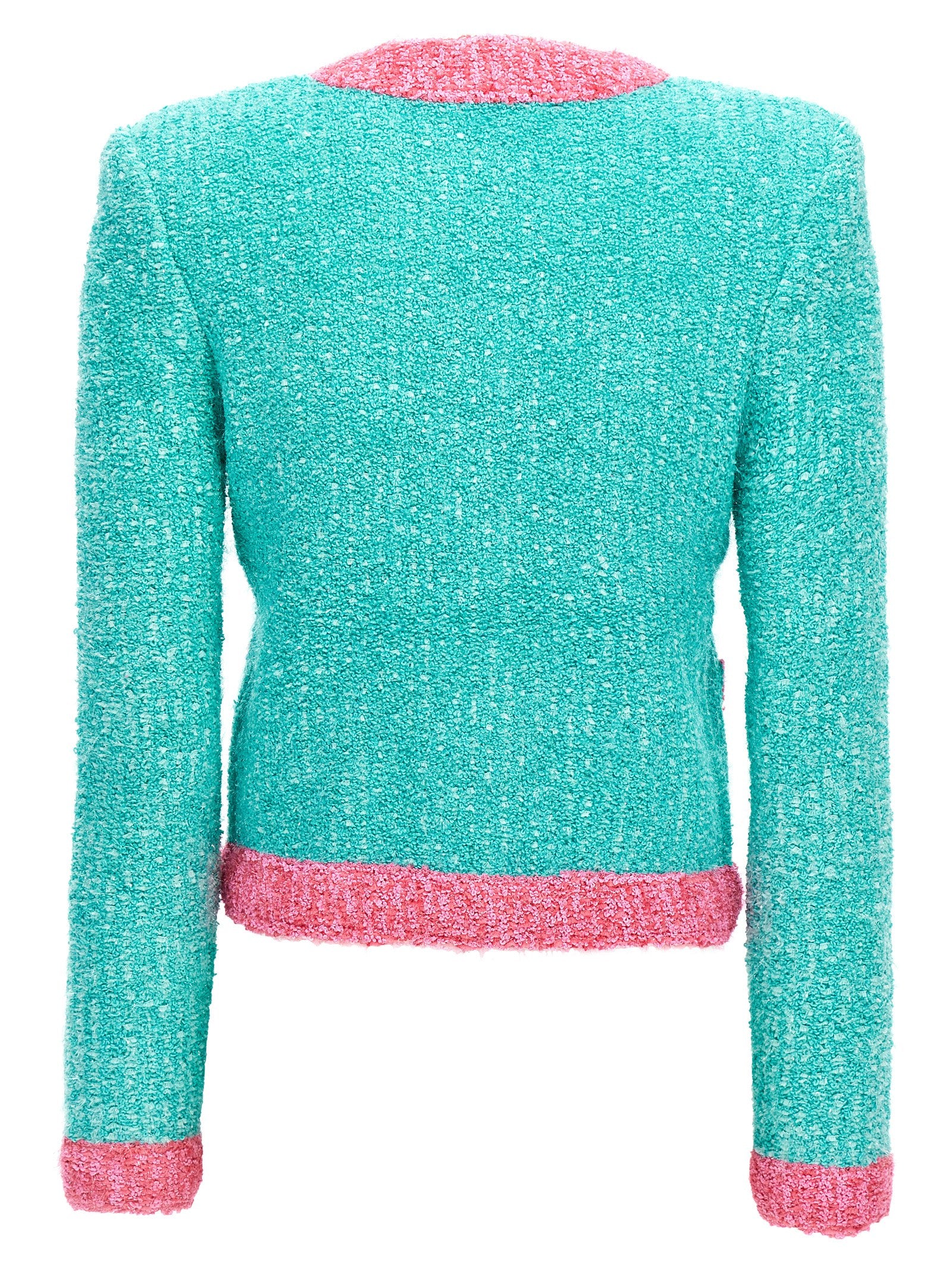 Veste en tweed avec fermeture du bouton de logo avant, poches, épaules rembourrées, manches longues.