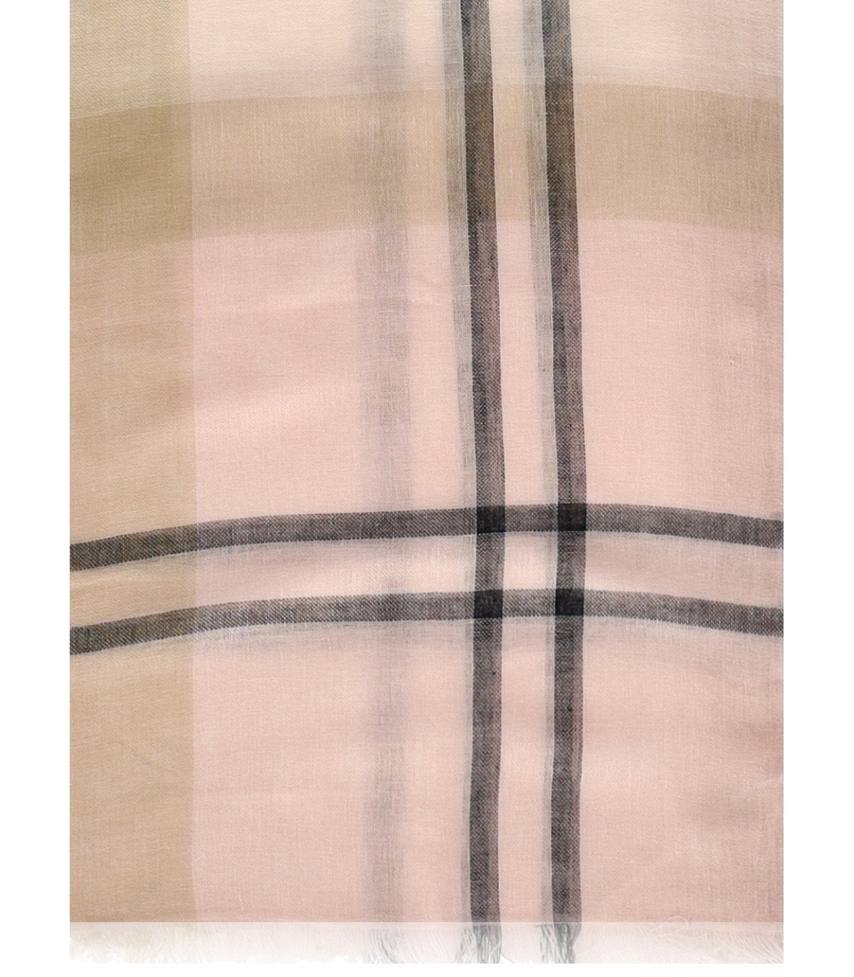 Barbour Abigail a volé en coton et en lin avec un motif tartan rose. Bords à franges, mesurant 178x67 cm. Composition: 80% de coton, 20% de lin.
