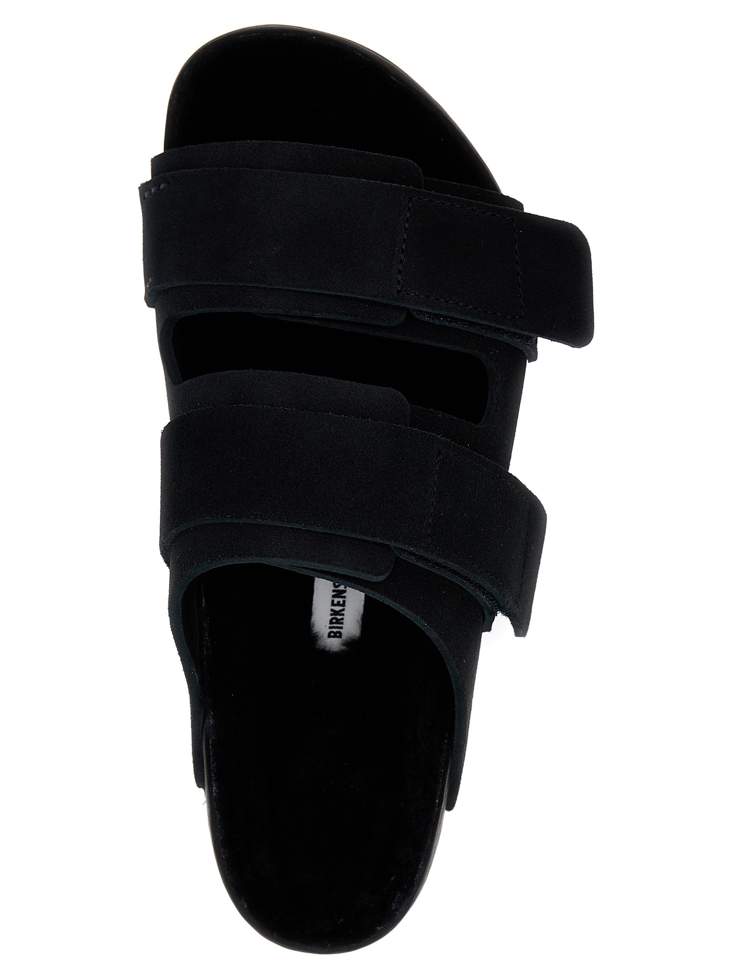Tekla x Birkenstock 1774 Sandales en daim 'Uji', bande velcro à double réglage, semelle intérieure en fourrure, semelle en caoutchouc.