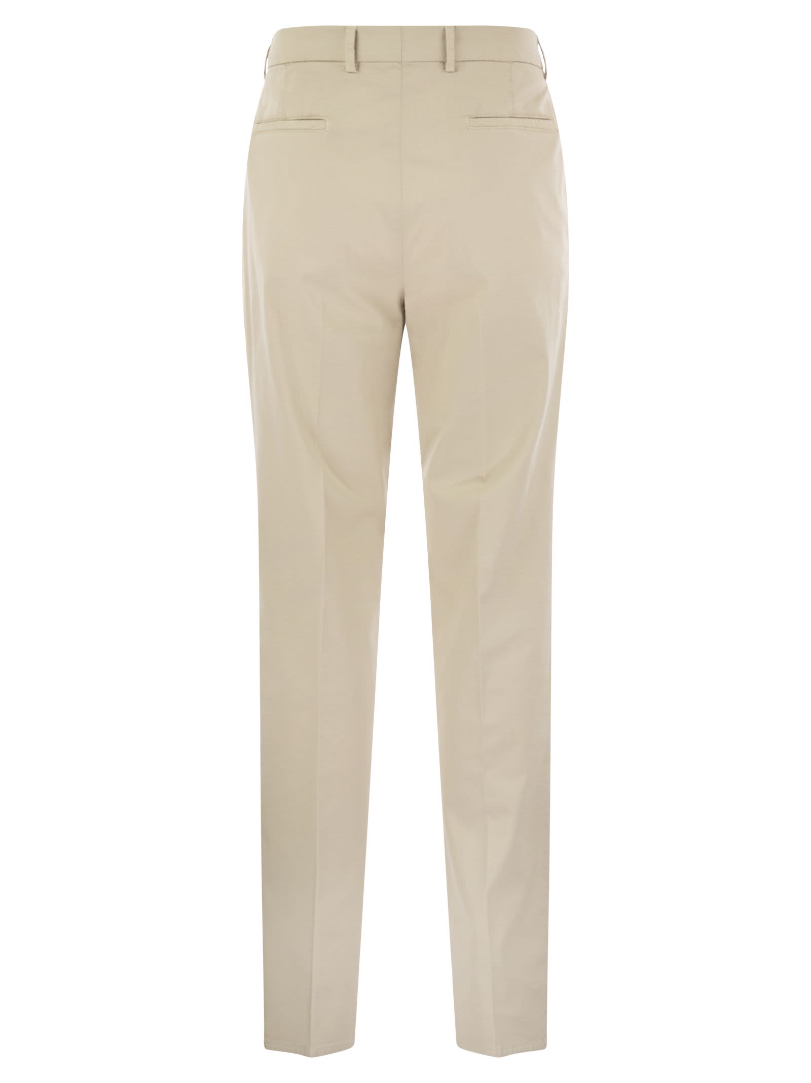 Les qualités raffinées de la gabardine américaine Pima Cotton enrichissent le style classique du pantalon. Les processus de fabrication créent une légère ombrage, qui caractérise la couleur du tissu léger. Le détail traditionnel à double plis est associé à un ajustement de loisirs, qui offre des proportions douces dans le siège et une hausse légèrement basse, tandis que la jambe est coupée près du corps. - Fermeture à fermeture éclair avec bouton, crochet métallique et bouton de support - Poches avant inclinées - pli - Poches de Welt arrière - 18 cm HEM - Ajustement de loisirs: l'élévation et le siège sont mous et les proportions de la jambe sont effilées ID: M289Le1450 C6233