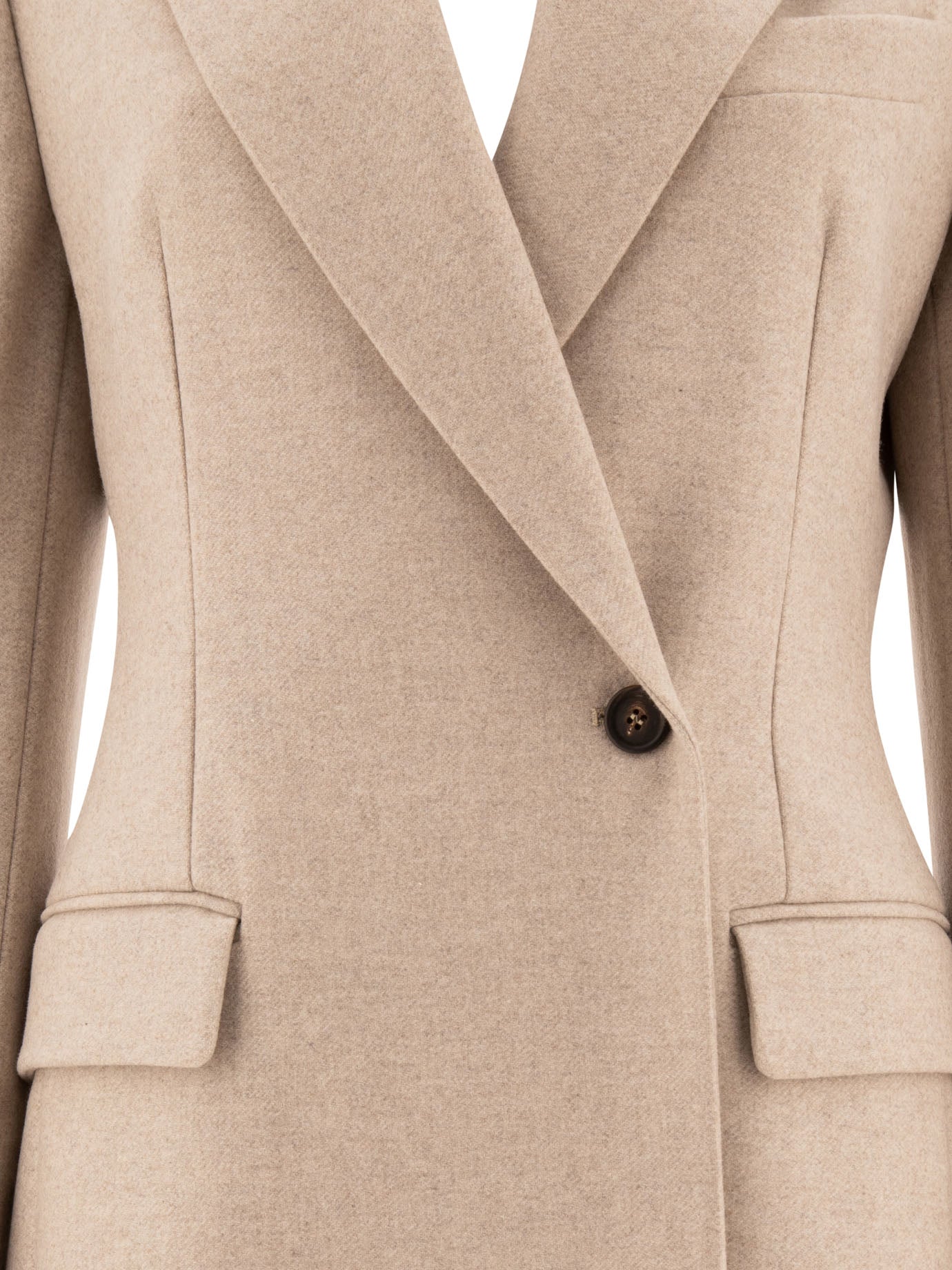 Brunello Cucinelli 's Le manteau en tissu en laine léger avec Monile est un véritable emblème de style intemporel et d'élégance. Conçu pour la femme moderne et raffinée, le vêtement se distingue par sa silhouette formelle et ses lignes droites qui améliorent les volumes rétro, tandis que la broderie monile brillante introduit un élément de l'unicité sophistiquée. Un choix idéal pour ceux qui veulent un look impeccable et chic. || - fermeture du bouton de corne - doublure en crêpe à mélange de soie - Tabillons cultivés - poche de poitrine - Poches à rabat bas - Cuffs avec quatre boutons de klaxon - Single Back Slit - Décoration de bijou sans nickel || Pour compléter votre tenue, nous vous recommandons d'associer cette couche avec un pull à col roulé en cachemire et un pantalon à jambes droites. Ajoutez un sac en cuir structuré et une paire de chaussures à mi-talons pour un look élégant et coordonné.