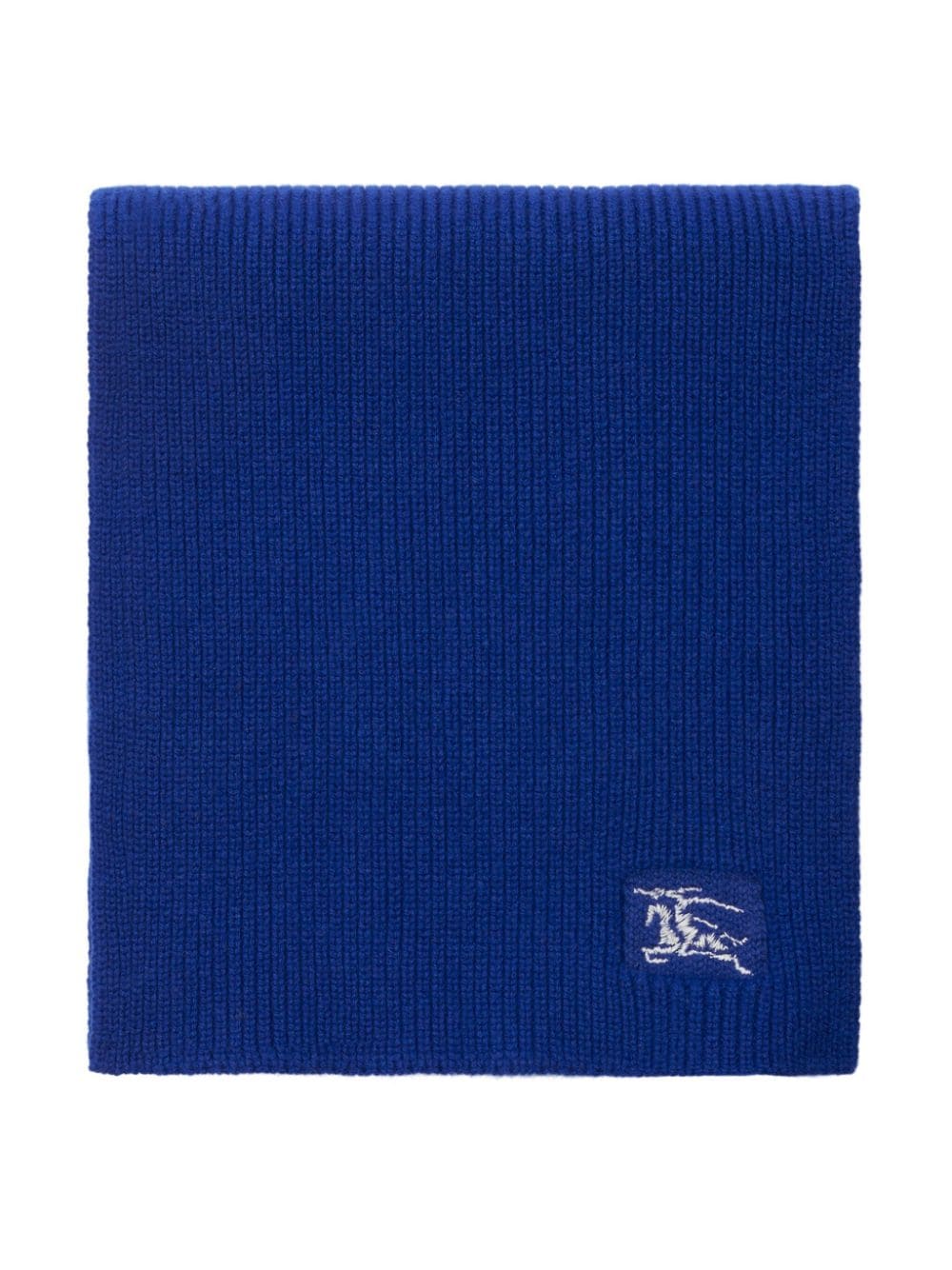 Burberry présente cette écharpe côtelée en cachemire avec un design équestre brodé.