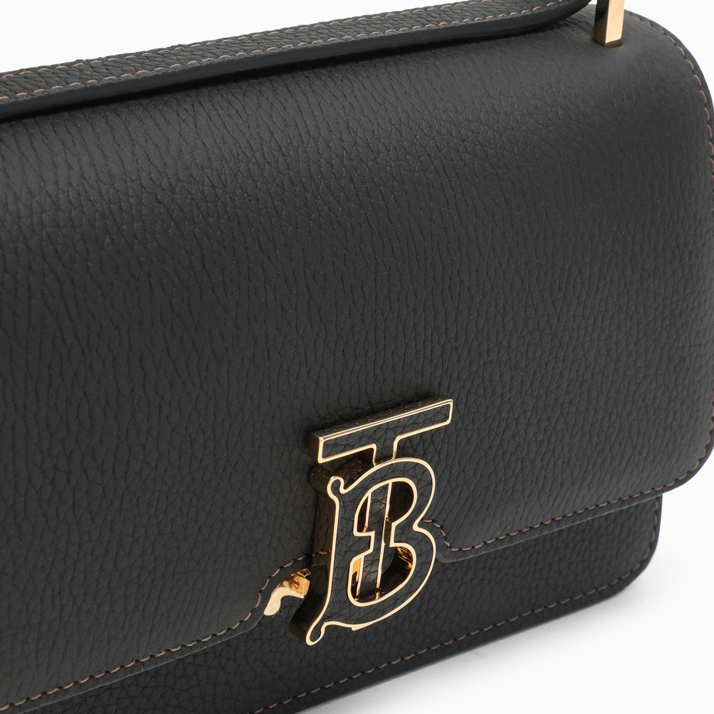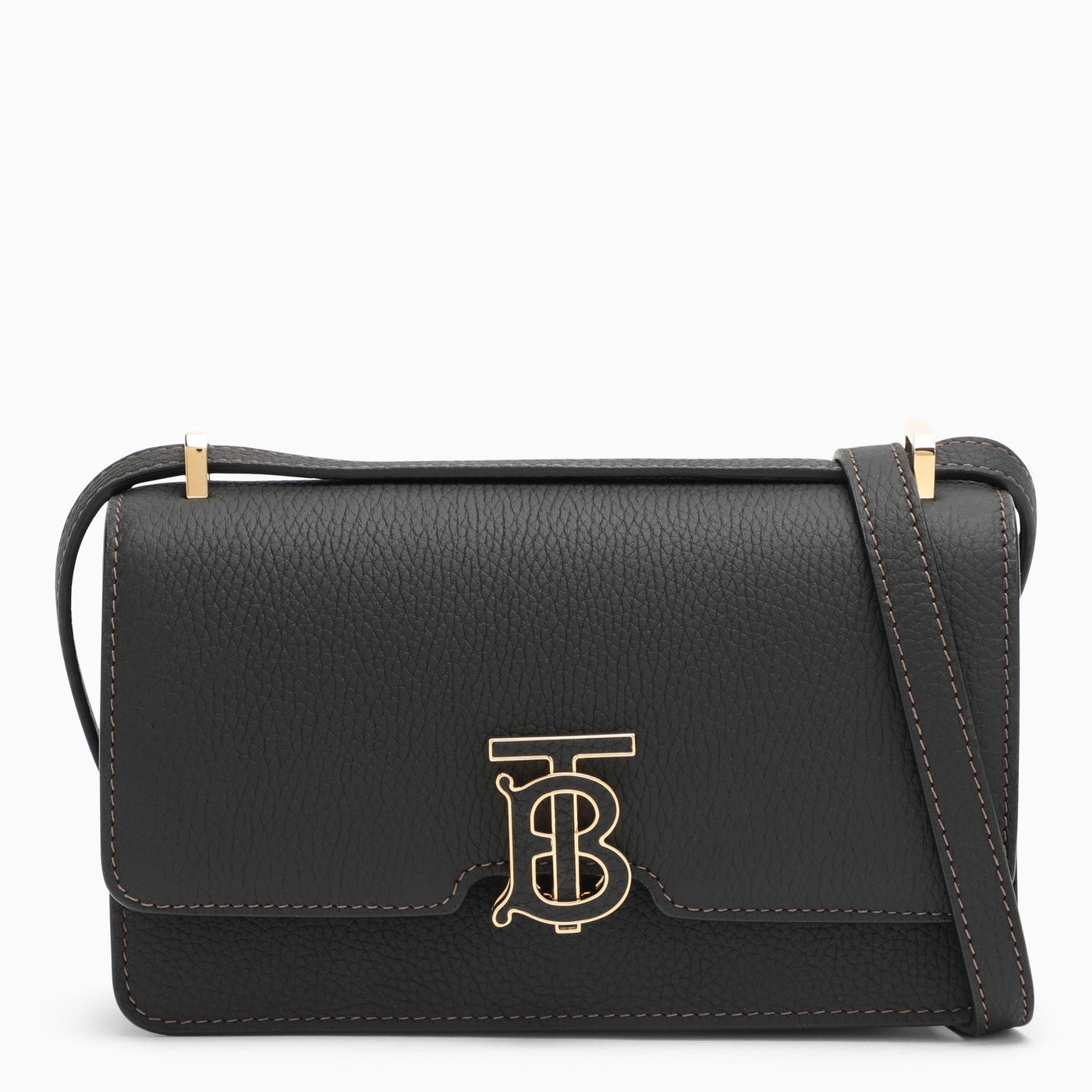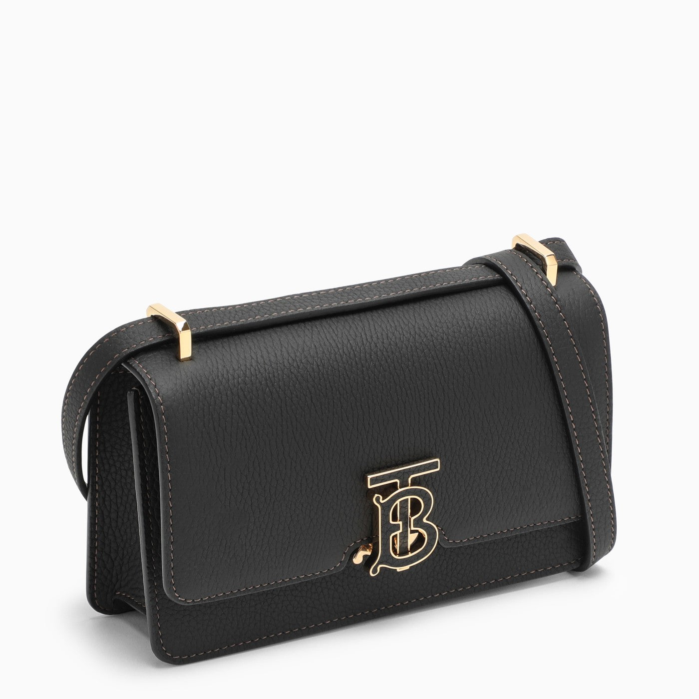 Sac à banc de rabat en cuir noir de Burberry avec un fermoir de logo avant, une fermeture magnétique, un bandoulière réglable et amovible et deux emplacements de carte interne.