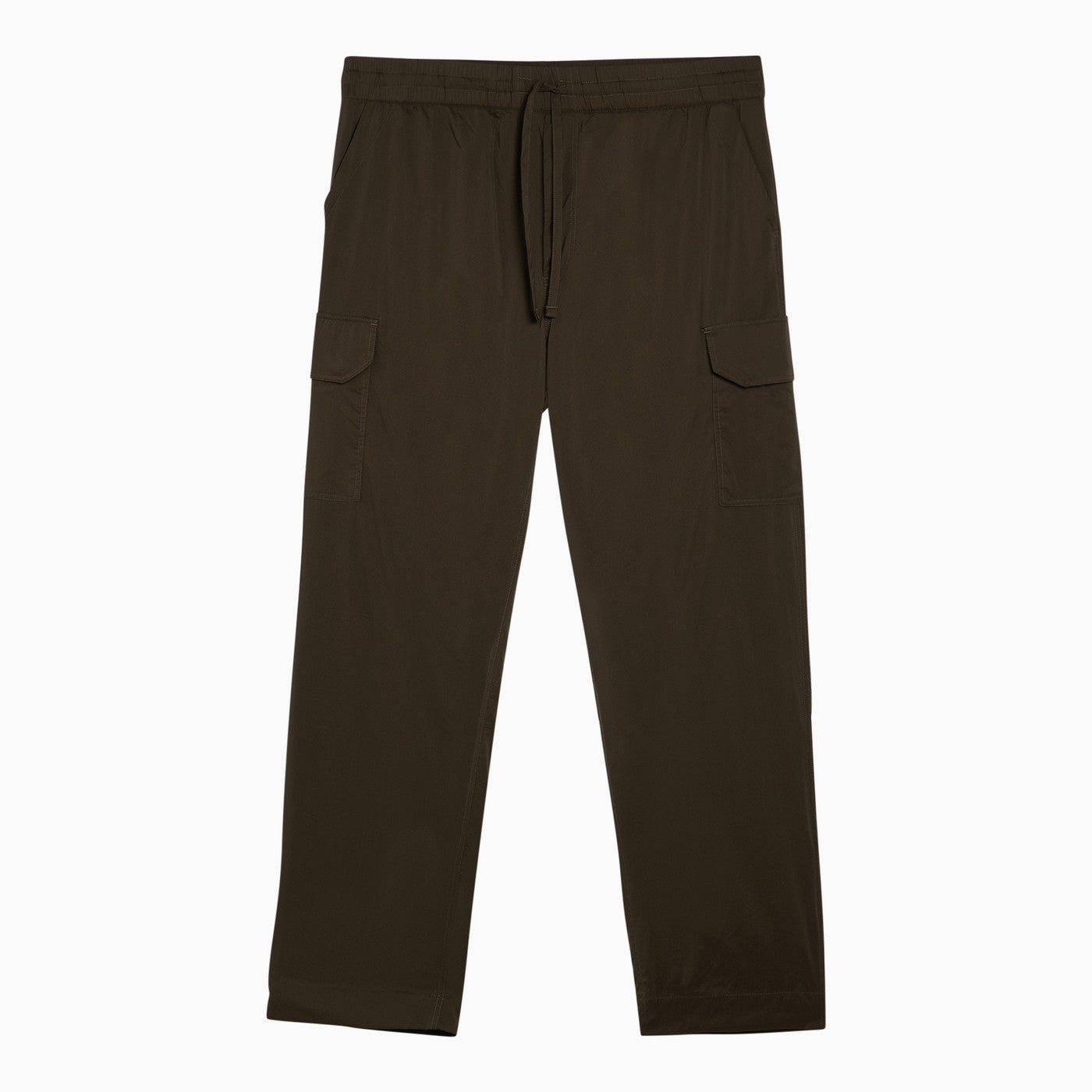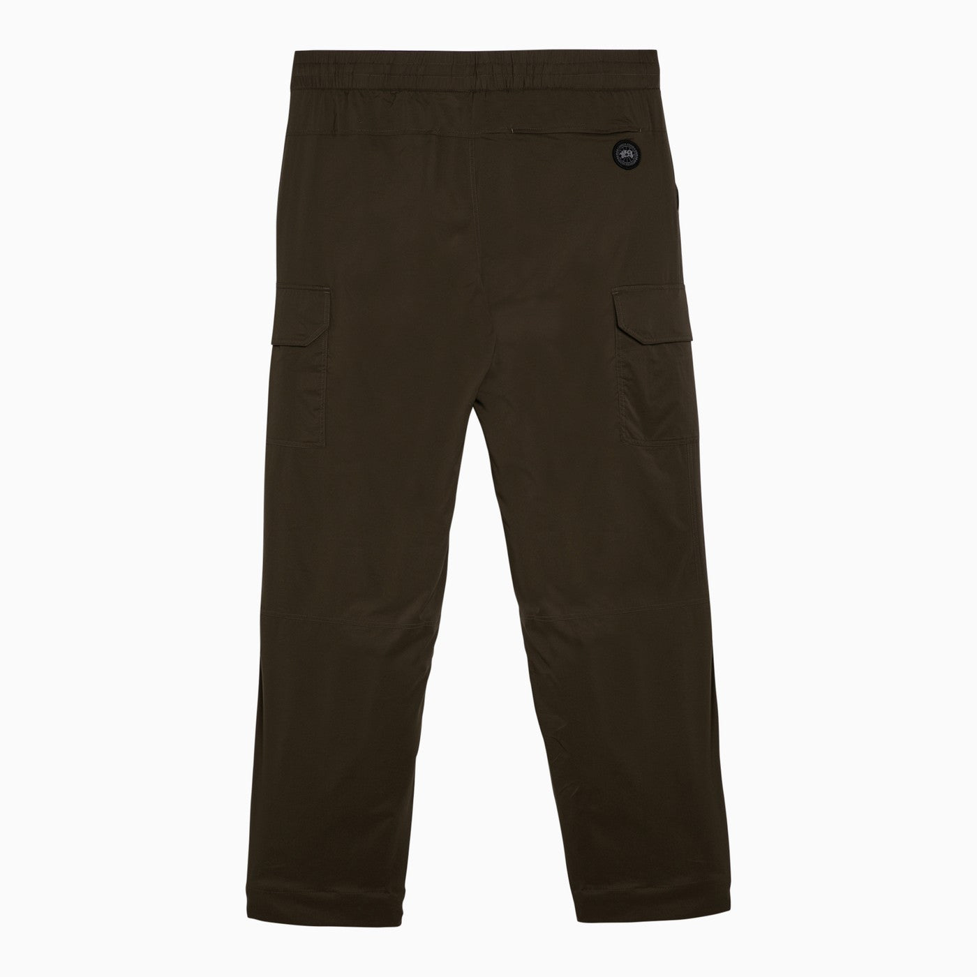 Pantalon en nylon vert militaire par le Canada Goose, avec une ceinture élastique avec cordon de cordon, deux poches de Welt latéral, une poche de Welt arrière, deux poches de patch avec rabat et patch de logo à l'arrière.