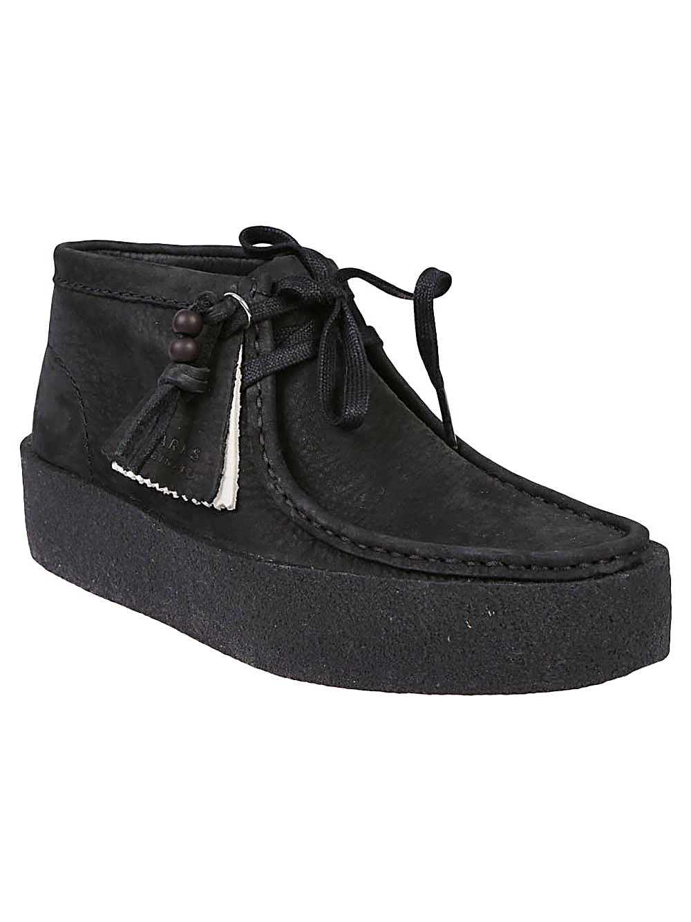 Boot de la cheville noire, points forts de couture, fermeture de lacets.