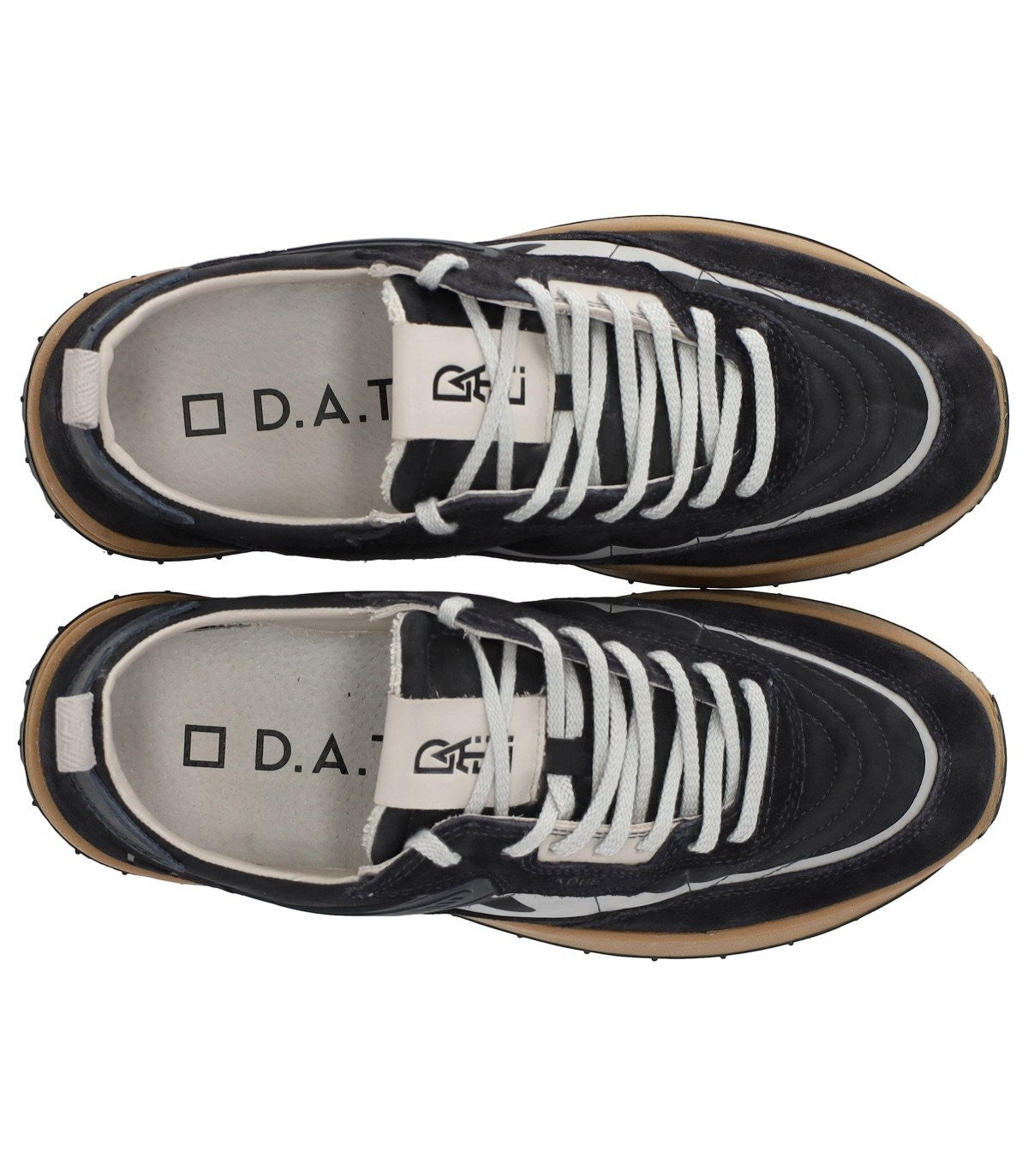 DATE. Sneaker K2 en cuir, daim et nylon dans des tons de bleu, équipés d'inserts en caoutchouc en ton. Doublage d'éponge en cuir et en coton, langue de marque et semelle en caoutchouc. Hauteur 4 cm.