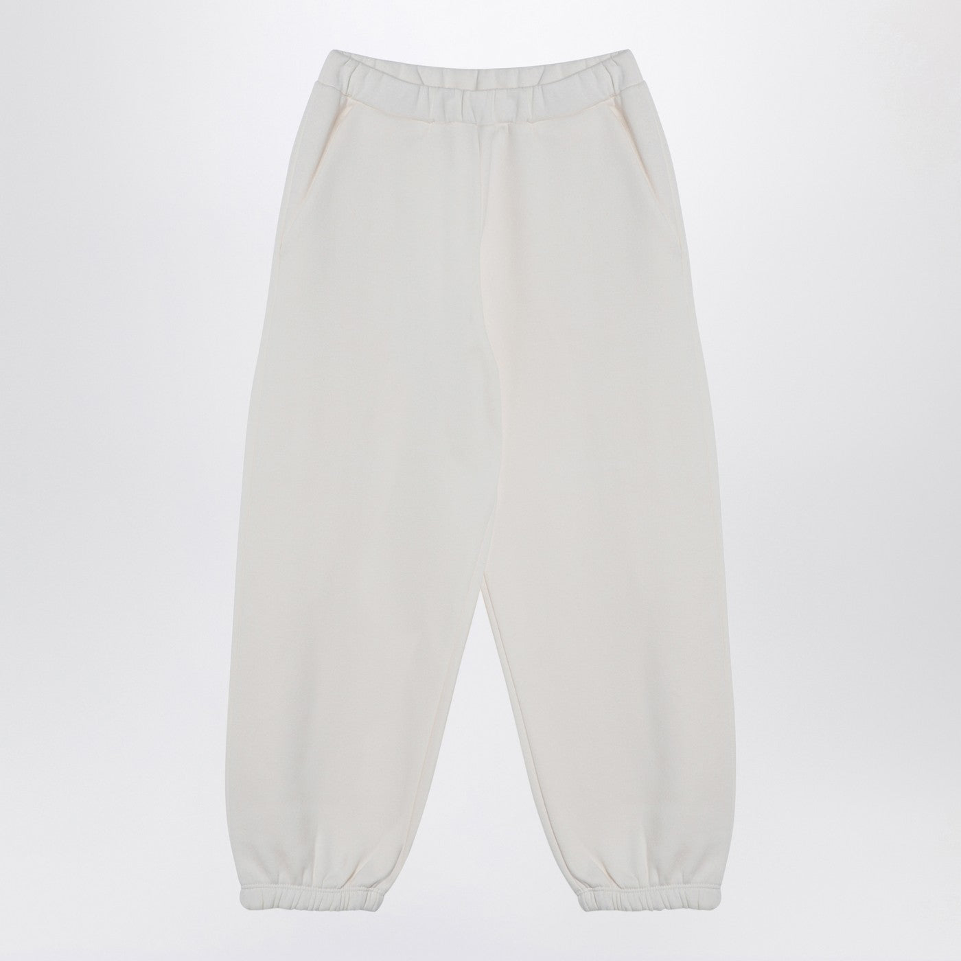 Ivory Cotton Blend Jogging pantalon de Douuod avec une ceinture élastique, deux poches de welt latéral et un petit lettrage de logo à l'arrière.