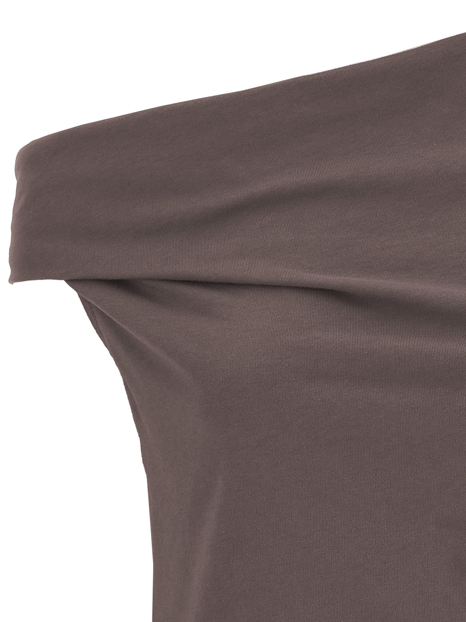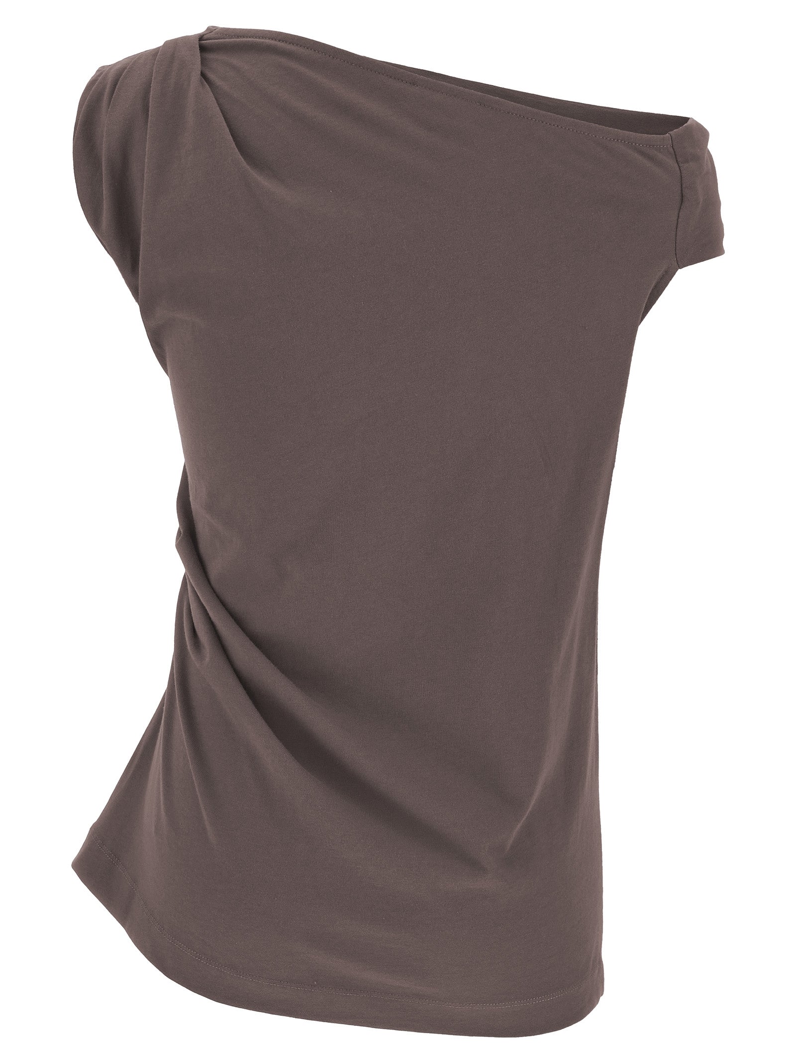 Top en maillot de coton 'Henray' 'avec drapage et plis au modèle de taille, mannequin à l'épaule, cou de bateau.