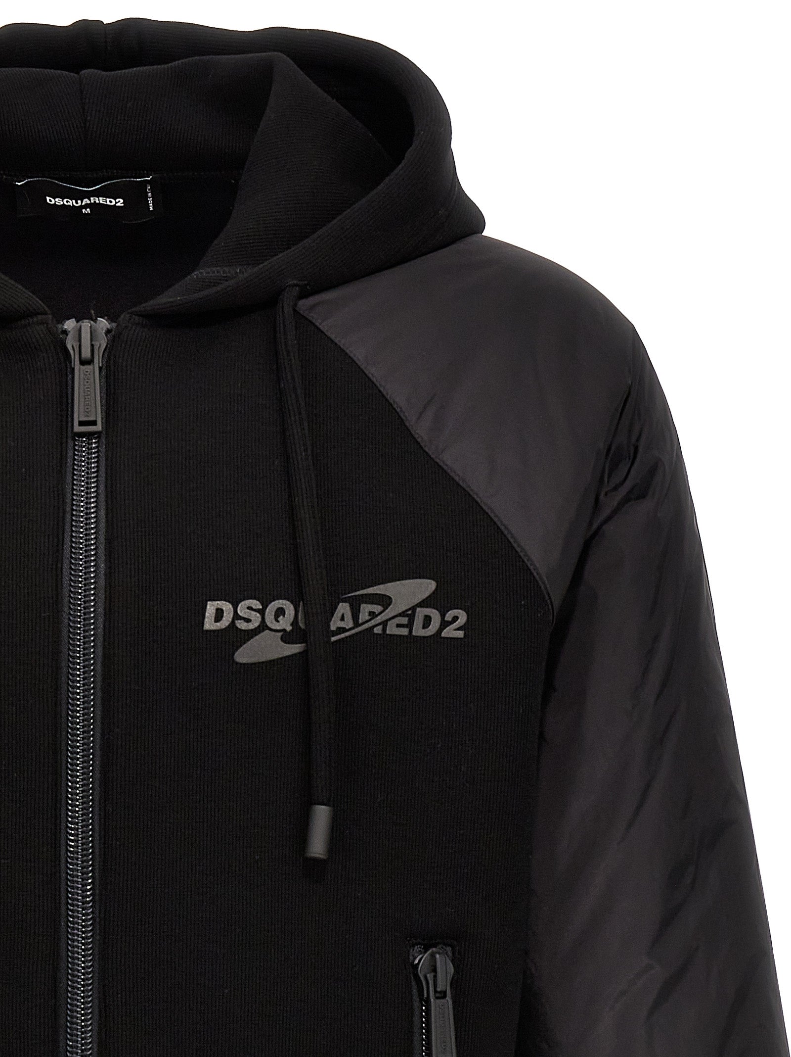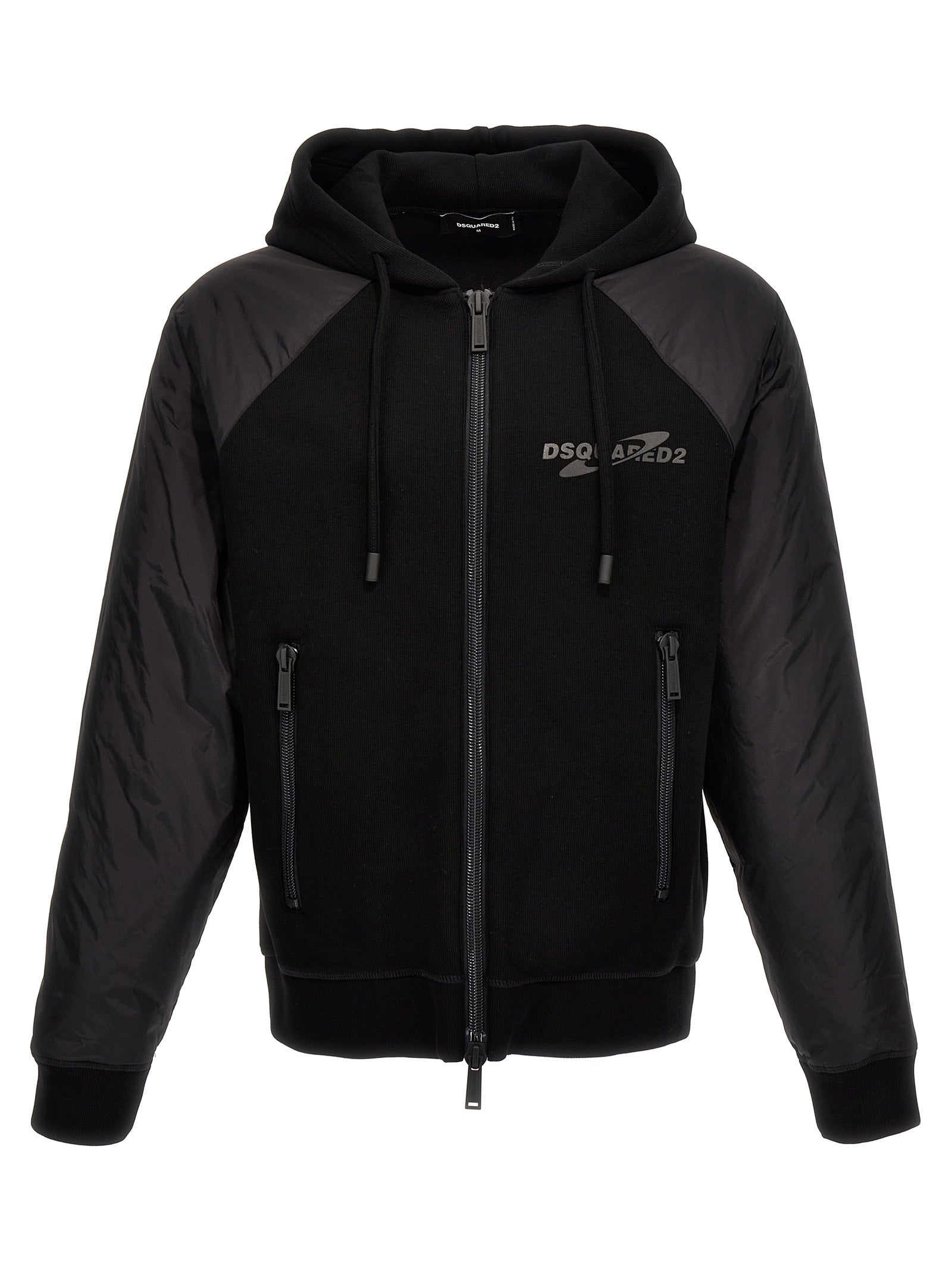 'Ibra' stretch viscose hoodie with front logo print, padded nylon sleeves with elastic cuffs, pockets.