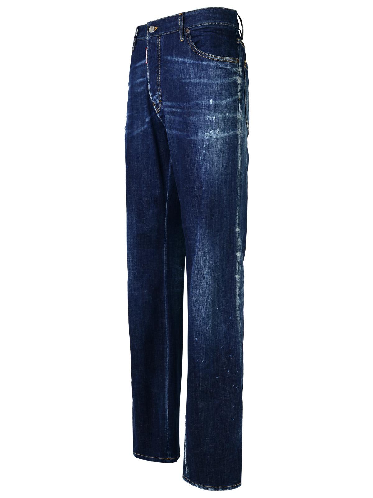 Effet en détresse, micro-rips et patchs de contraste, trois poches avant, logo en tissu rouge sur le volet, mouche de bouton, couture à double aiguille de contraste, jambe large, deux poches, étiquette de logo en cuir à l'arrière.