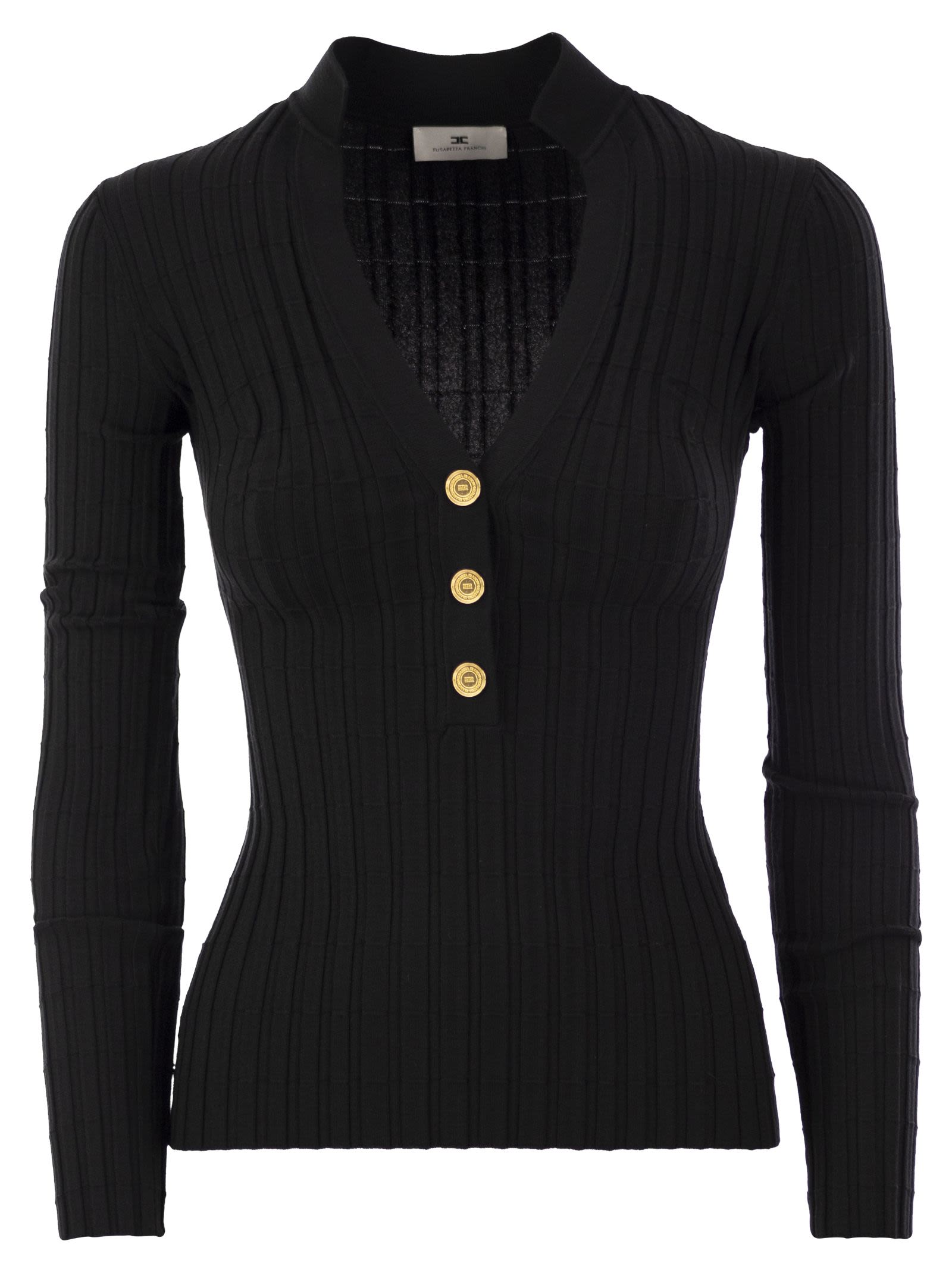 Elisabetta Franchi Sweater viscose côtelé avec boutons de boutons