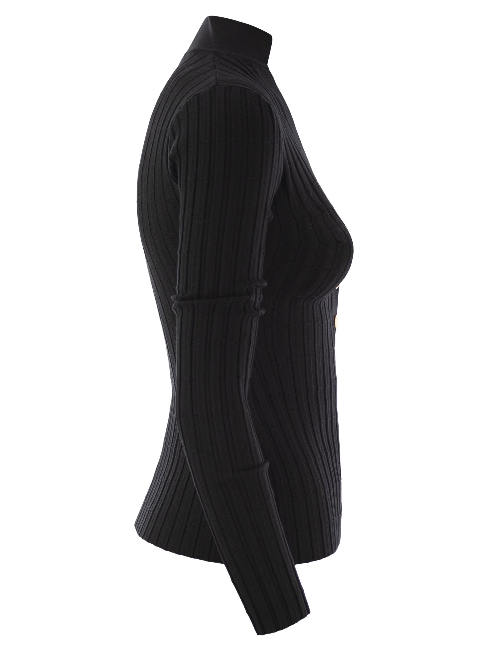 Cash à viscose côtelé à manches longues. Il dispose d'un col debout, d'un col en V et d'un bouton de simulation en métal doré. - Slim Fit - Boutons en métal doré - ID de concepteur à col en V: MK62S46E2 110