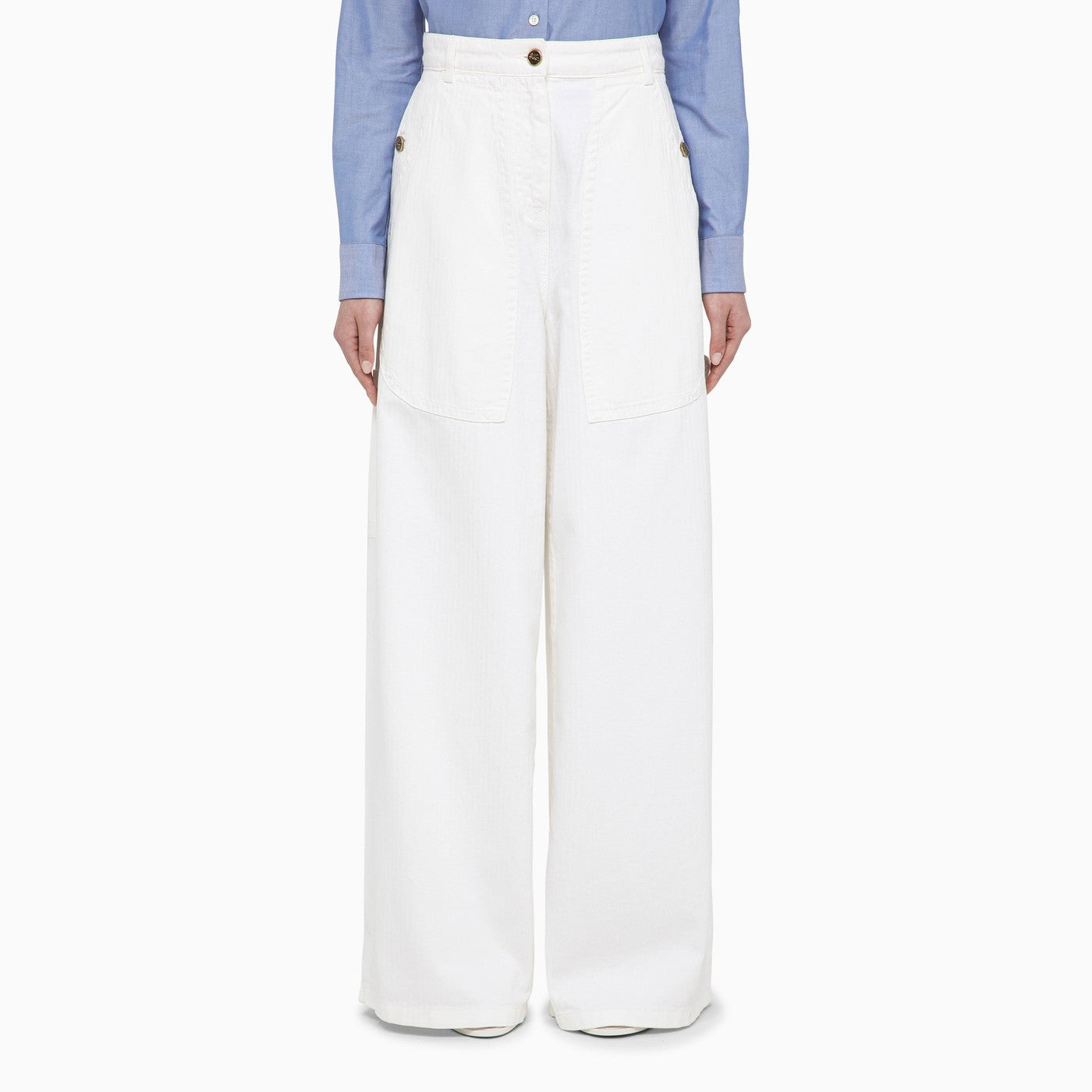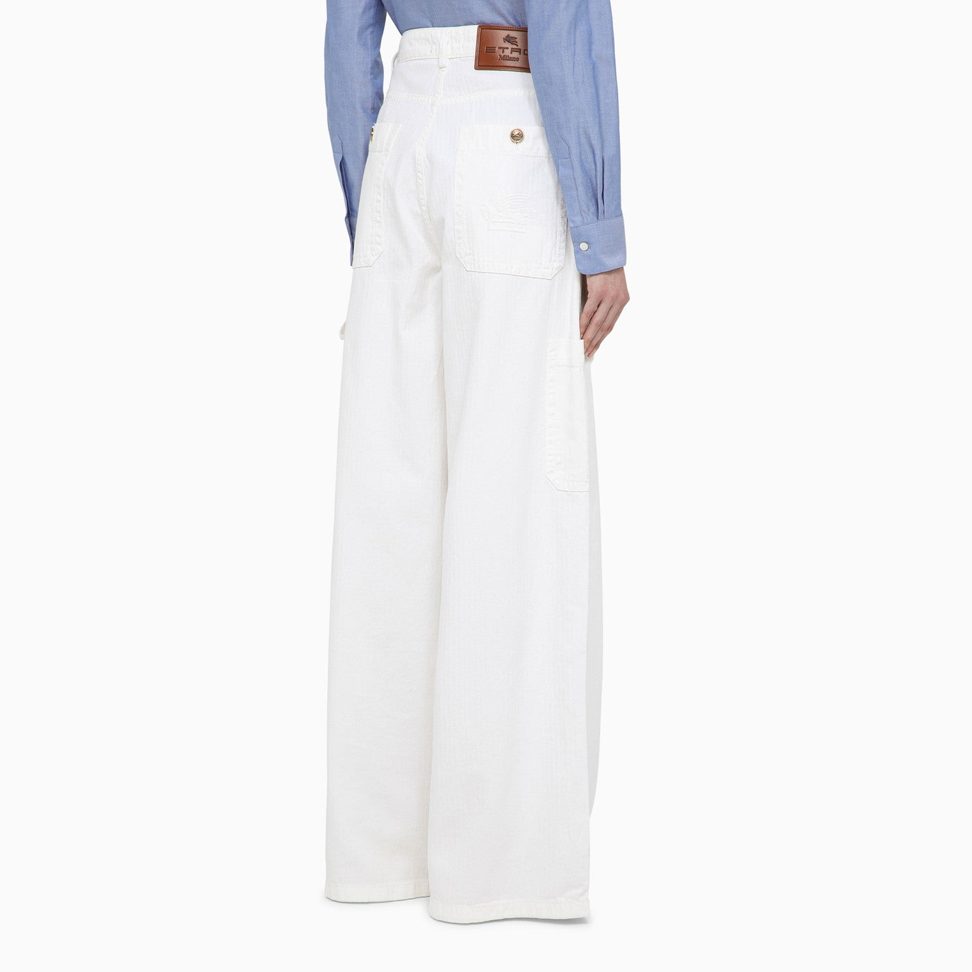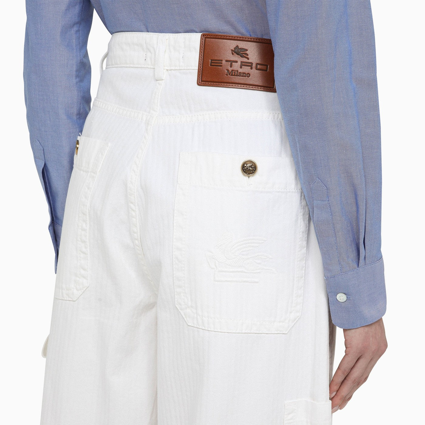 Pantalage en coton large d'ETRO avec une autre ceinture, la fermeture à glissière avant et la fixation des bouton, deux poches de welt latéral avec bouton, un patch de logo arrière, des boucles de ceinture, deux poches de patch arrière avec bouton et logo brodé de ton sur ton.