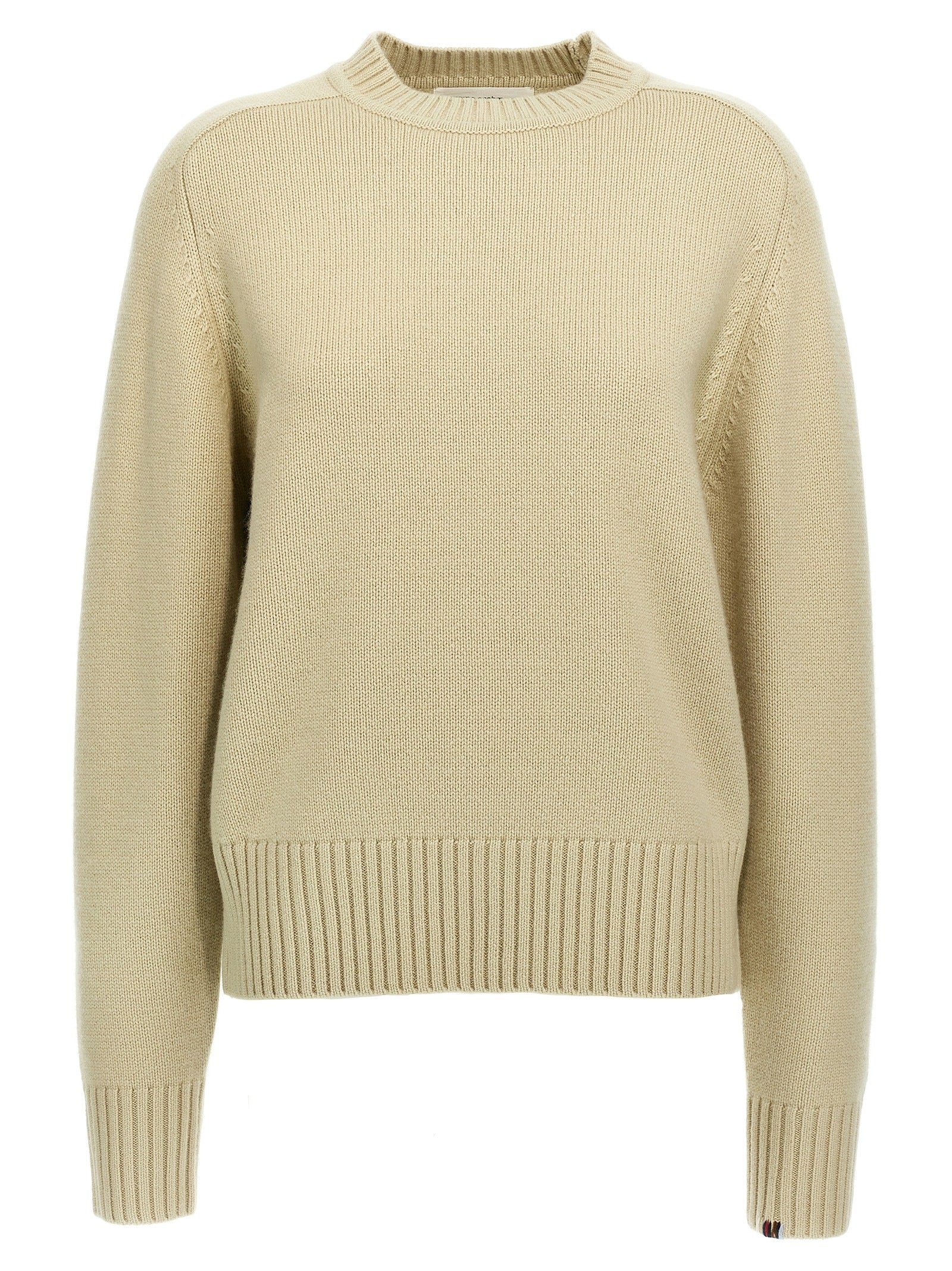 Pull en cachemire 'n ° 123 Bourgeois Déssert' avec cou d'équipage et manches à revers longues.