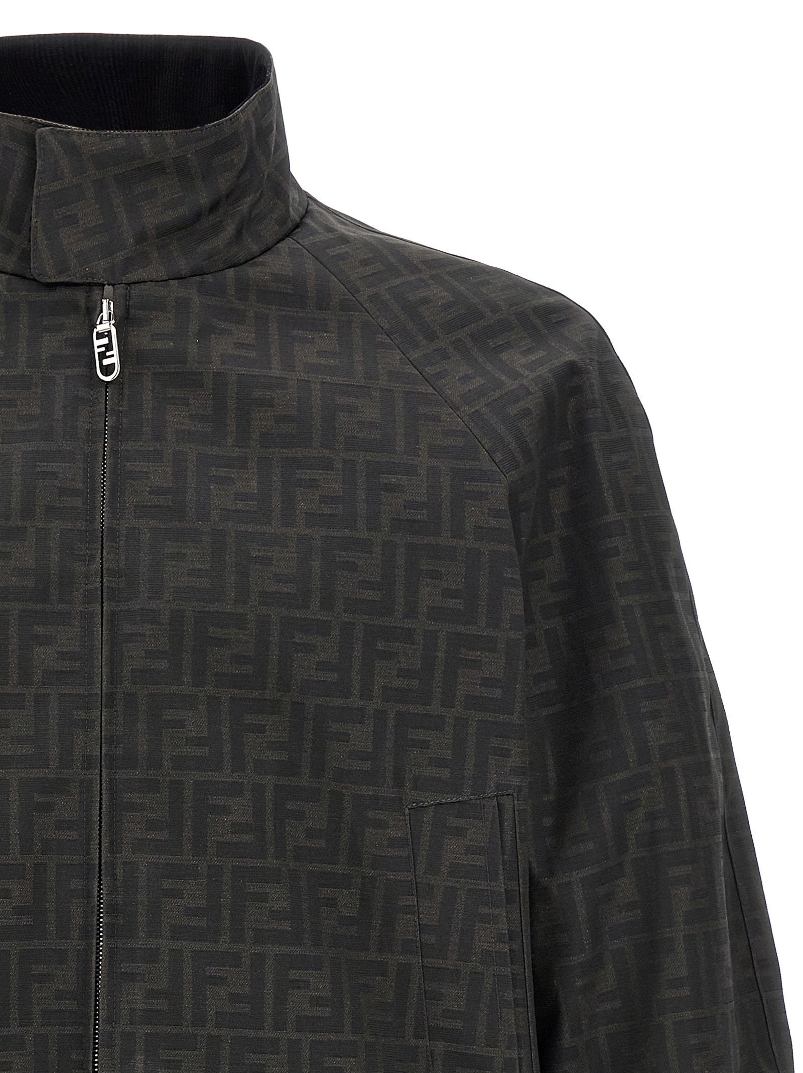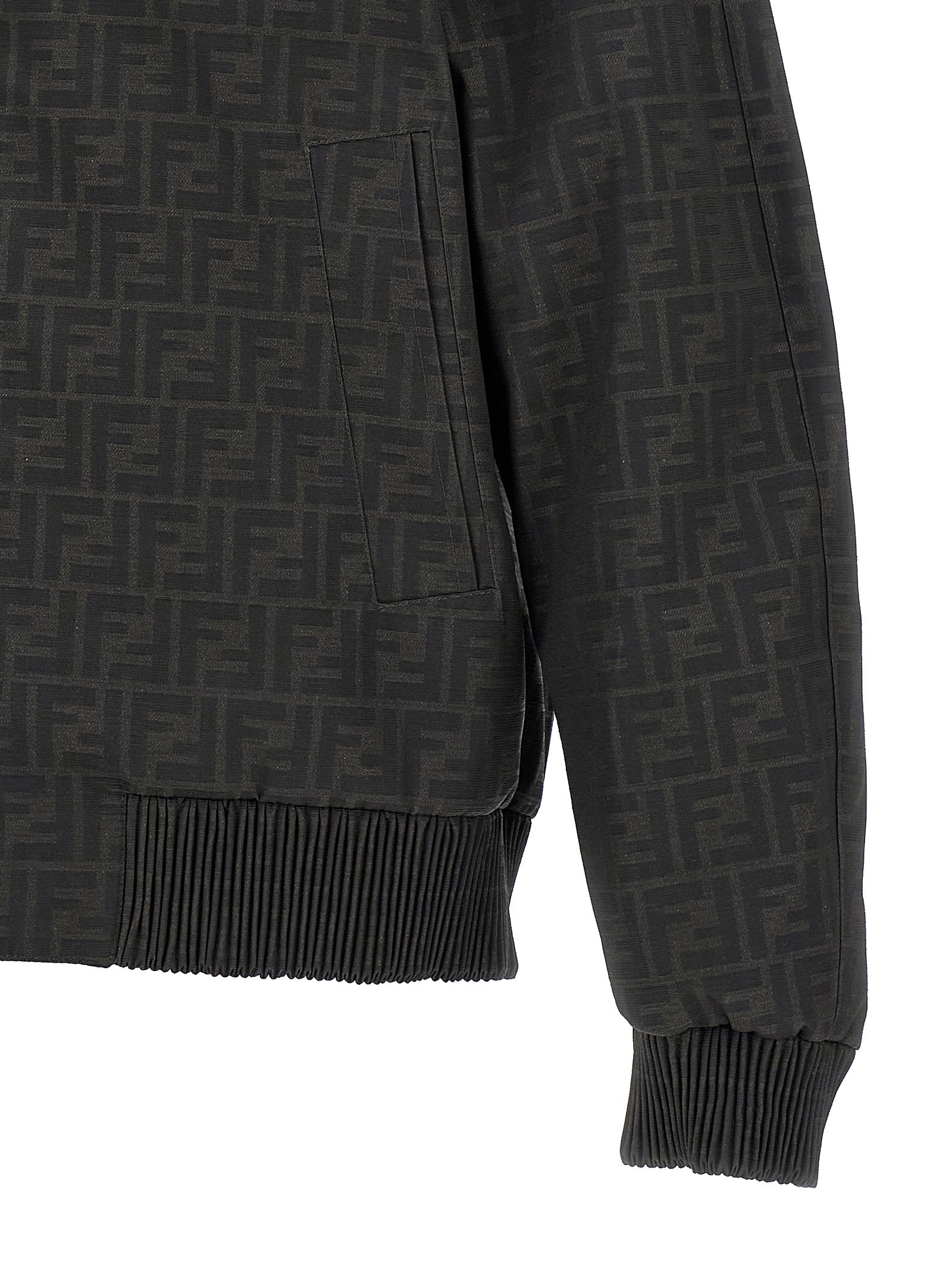 Bomber en tissu revêtu avec logo `` FF '', fermeture à fermeture éclair, poches, manches à remise à long terme, ourlet élastique.