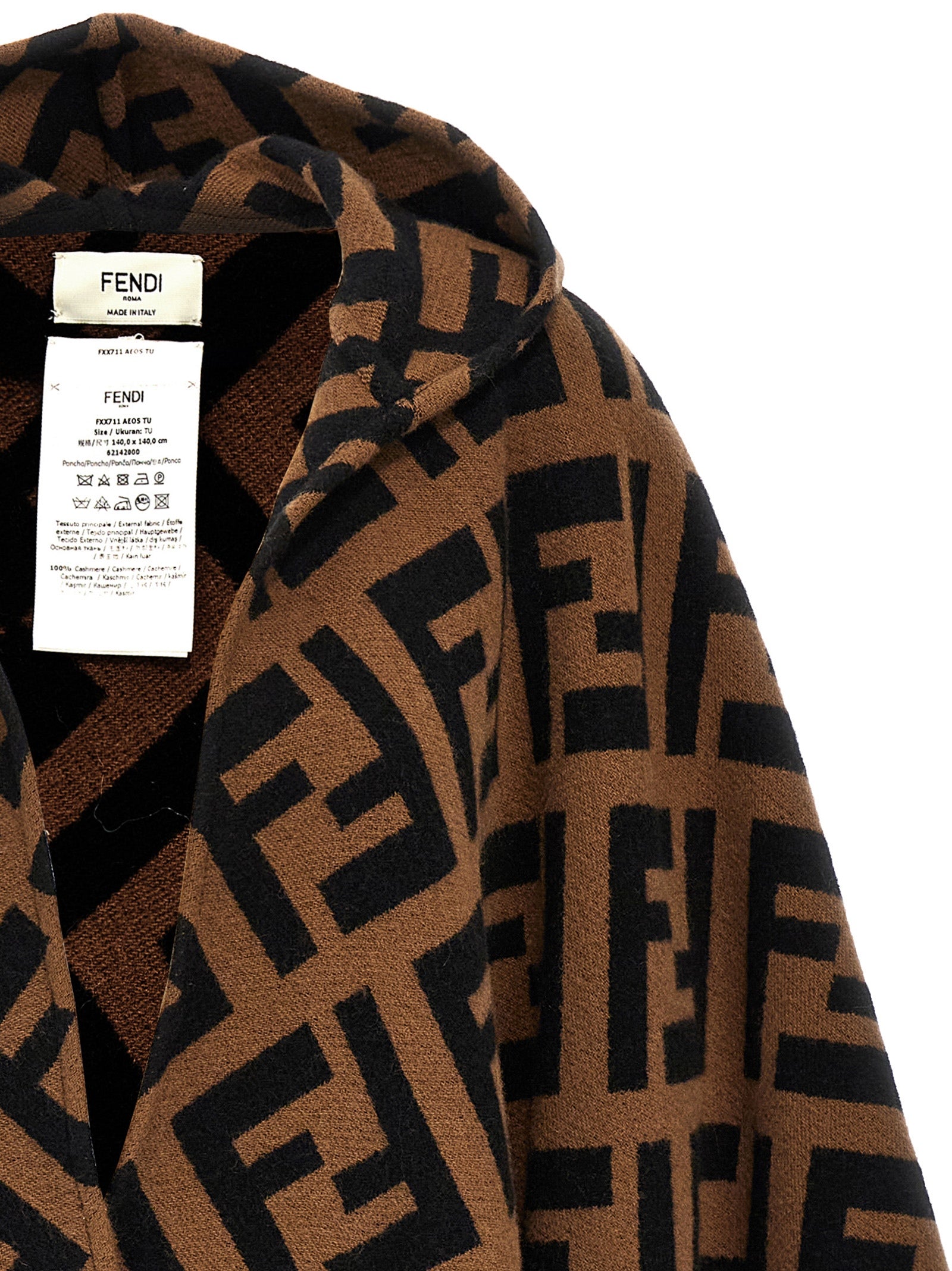 Poncho à capuche en cachemire, modèle macro, poches, franges sur les bords.