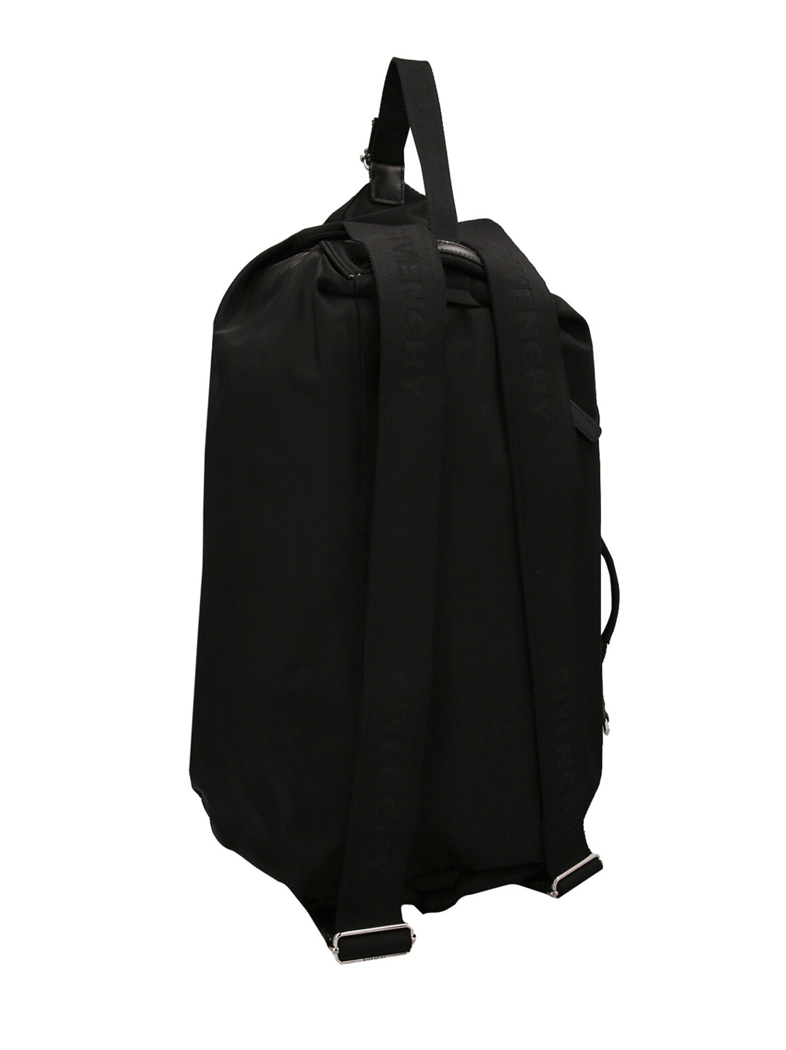 Sac à dos en nylon, avec une fermeture à fermeture éclair décorative 4G avec un tireur de logo, une impression de logo avant, une poignée latérale, des bretelles de logo réglables, des détails en cuir et en métal à finition argentée, une poche extérieure et une poche intérieure.