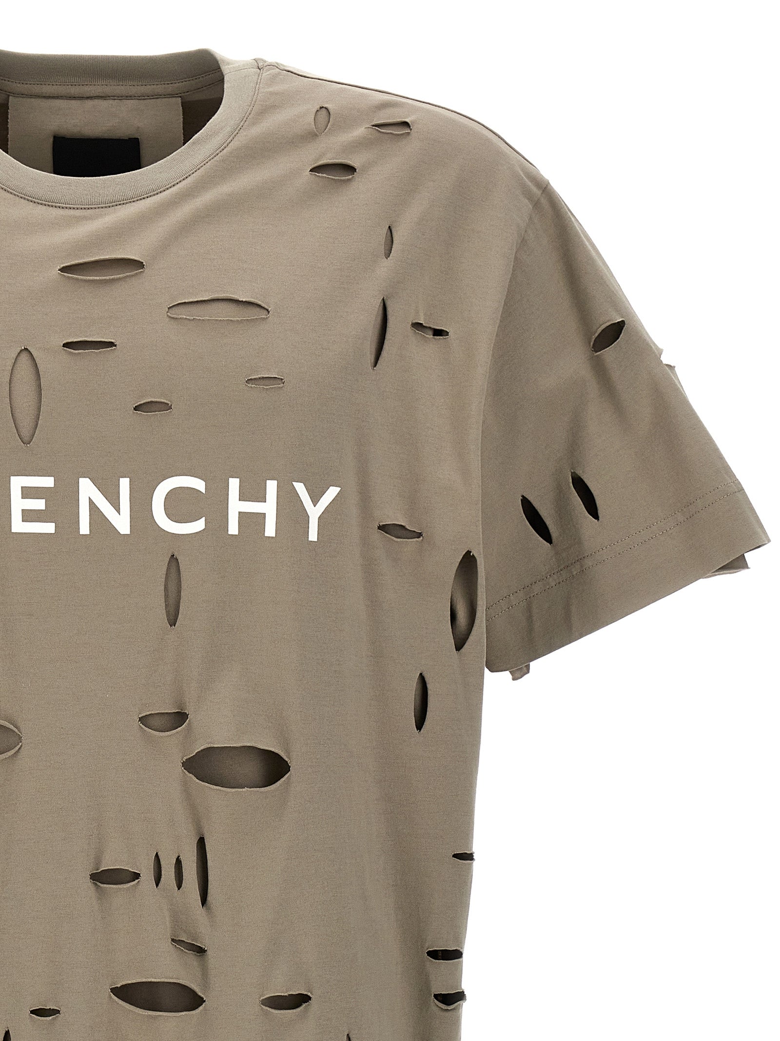T-shirt en coton avec trous, cou d'équipage, imprimé logo.