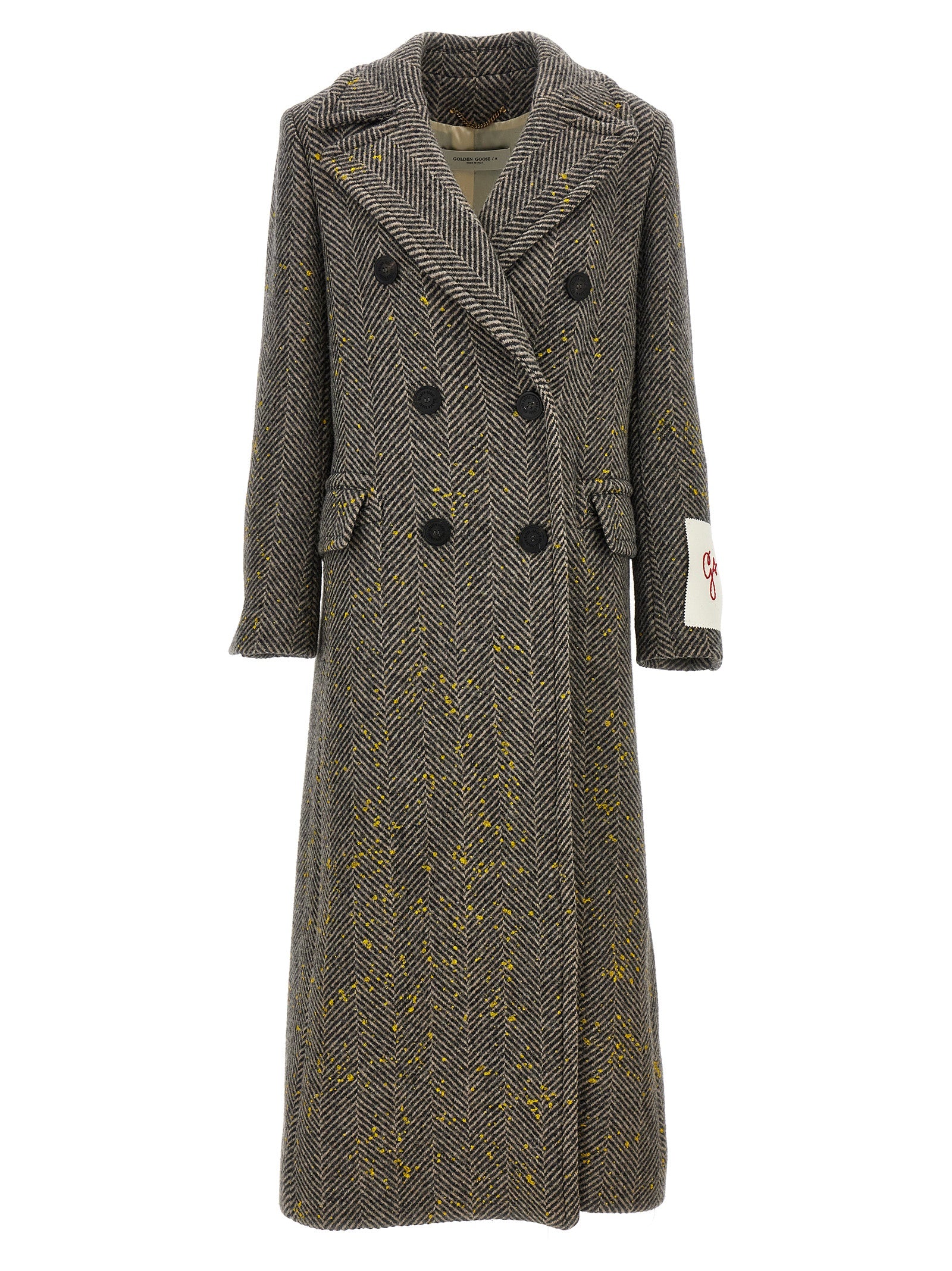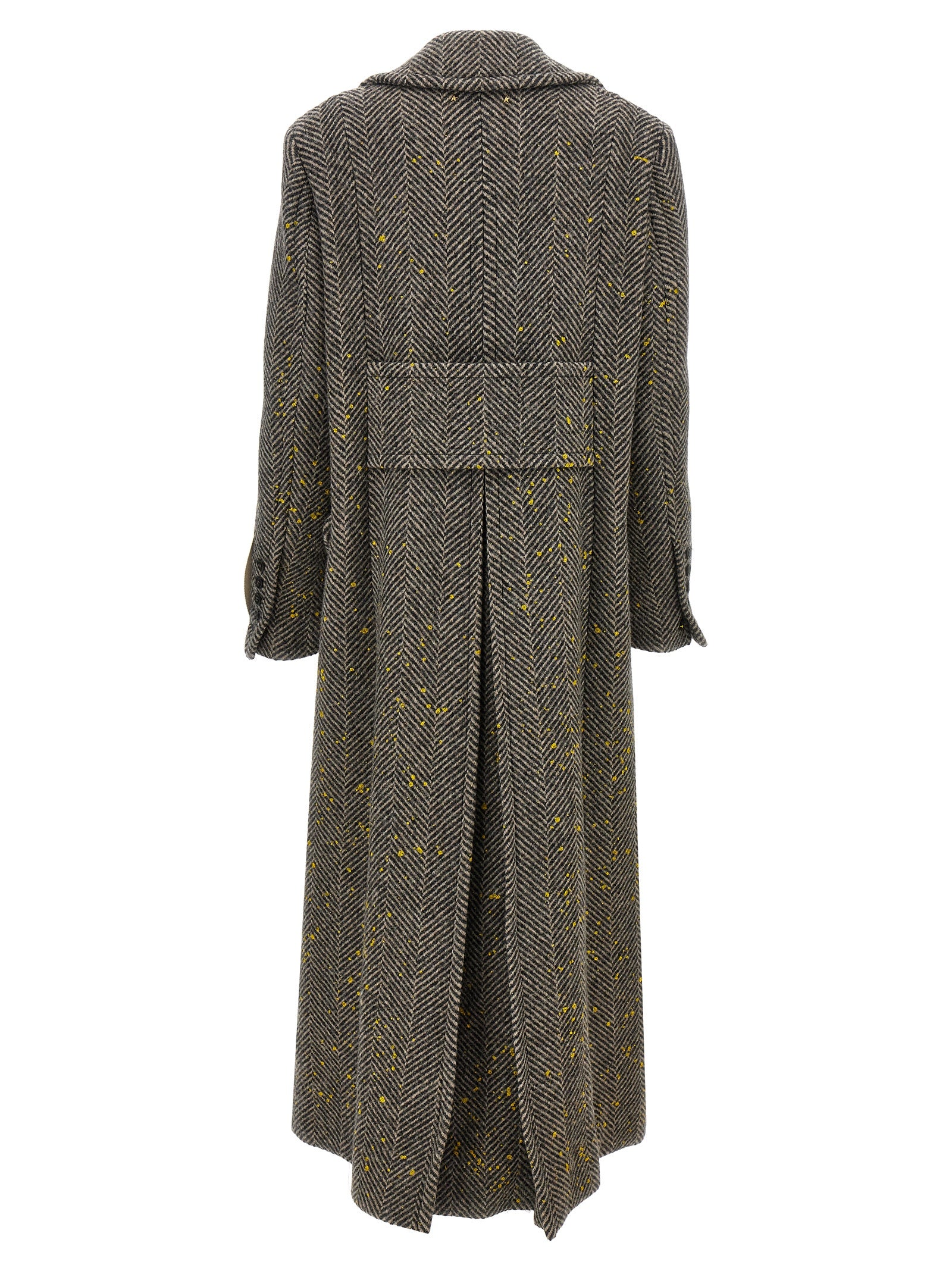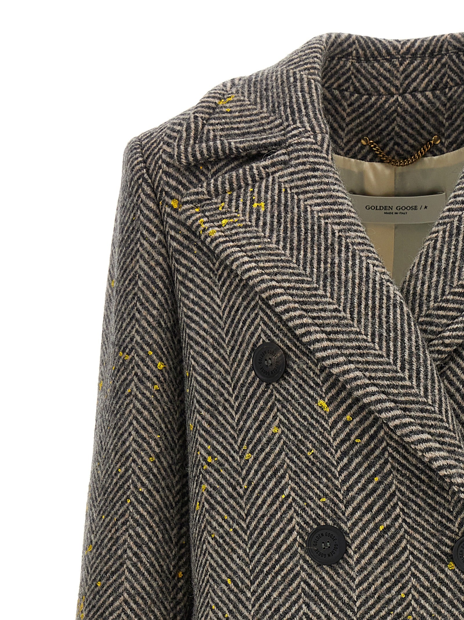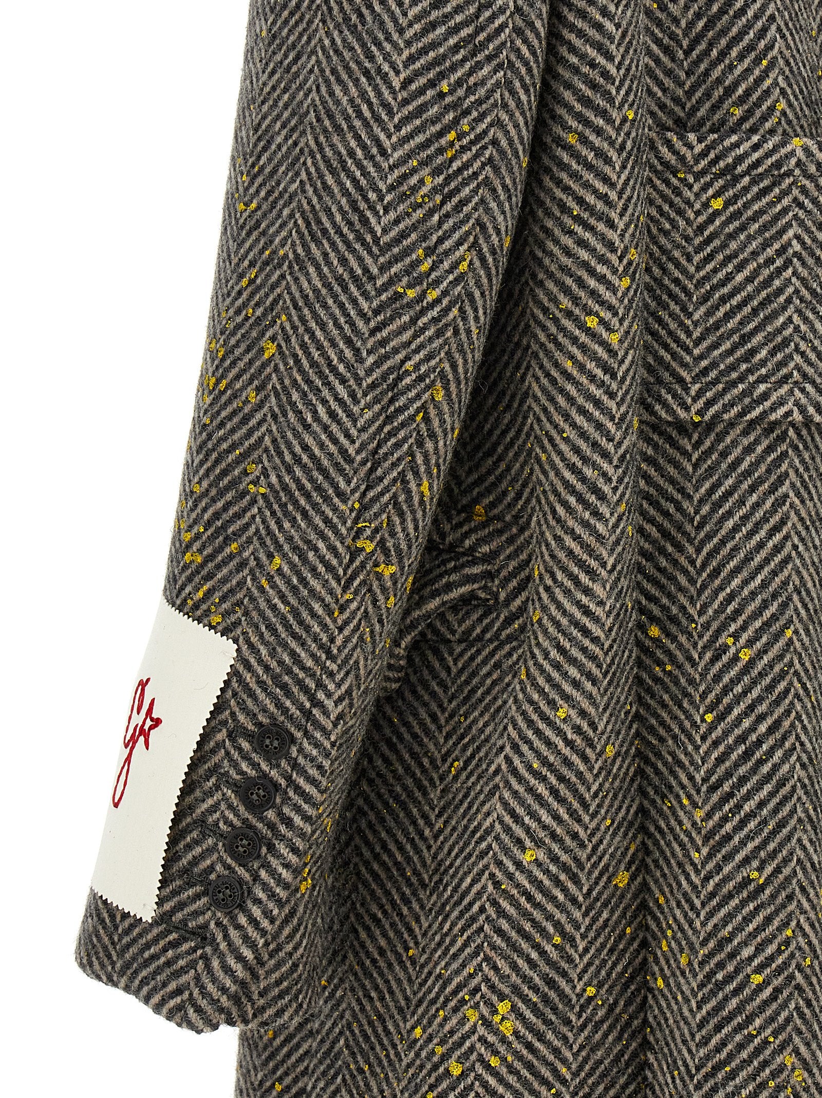 Mémateur de laine de chevrons «BEHREN» avec fermeture de bouton à double boutonnage, détails d'effets de peinture à contraste, manches à remise à long terme.