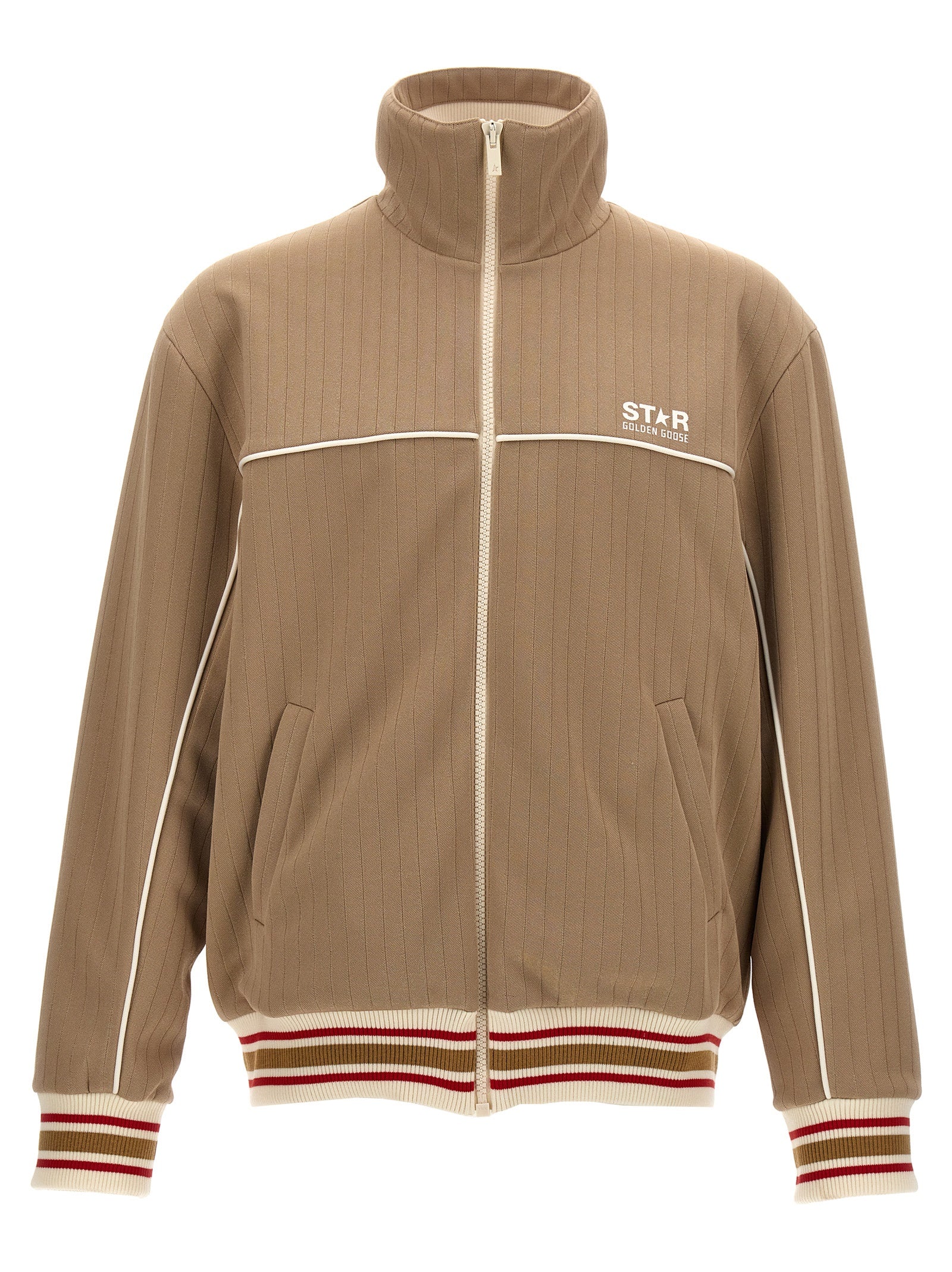 Sweat-shirt 'Max Track' en tissu technique nervuré avec imprimé de logo avant, fermeture à fermeture éclair, poches, manches à remise à long terme.