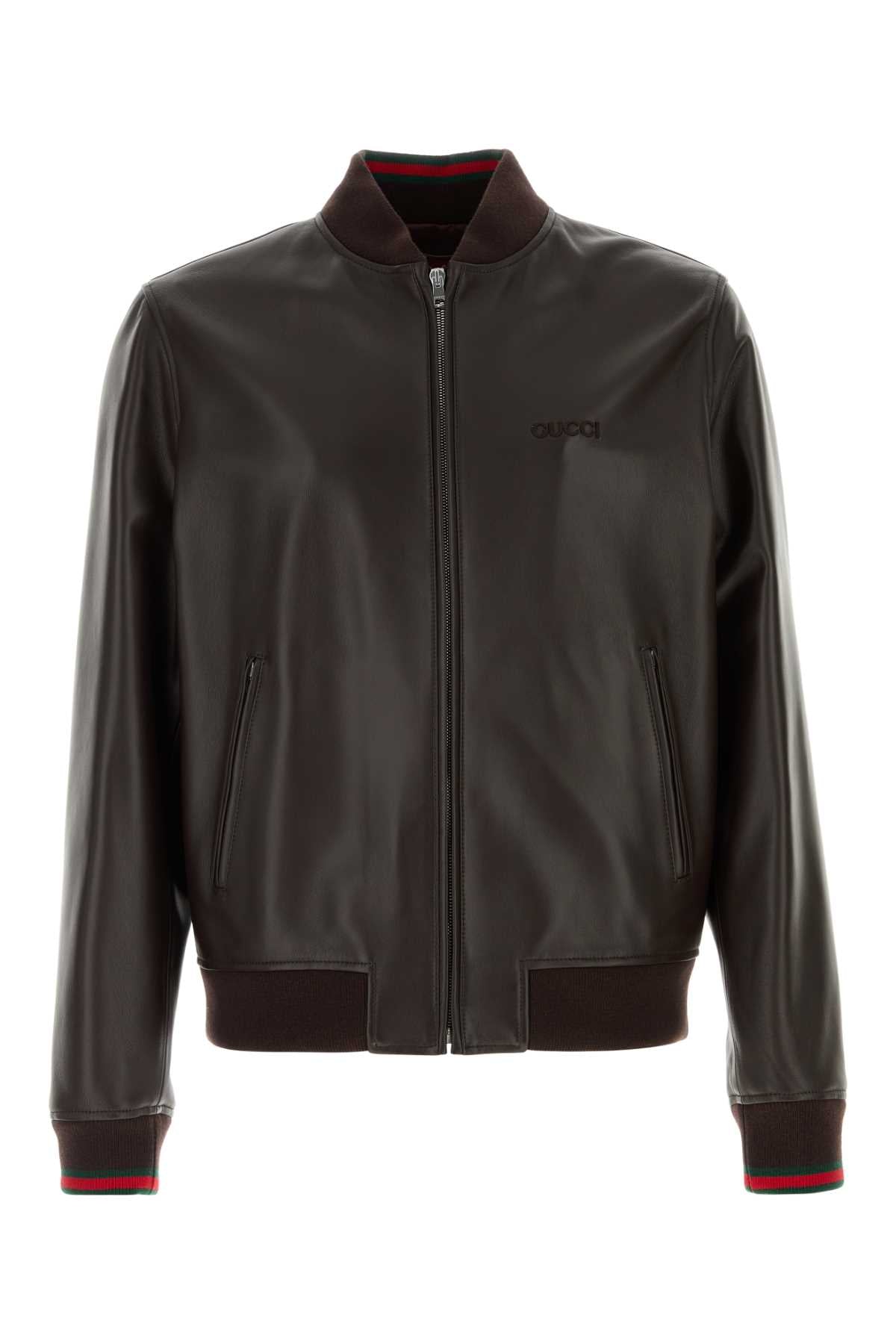 Gucci Bomber en cuir brun foncé