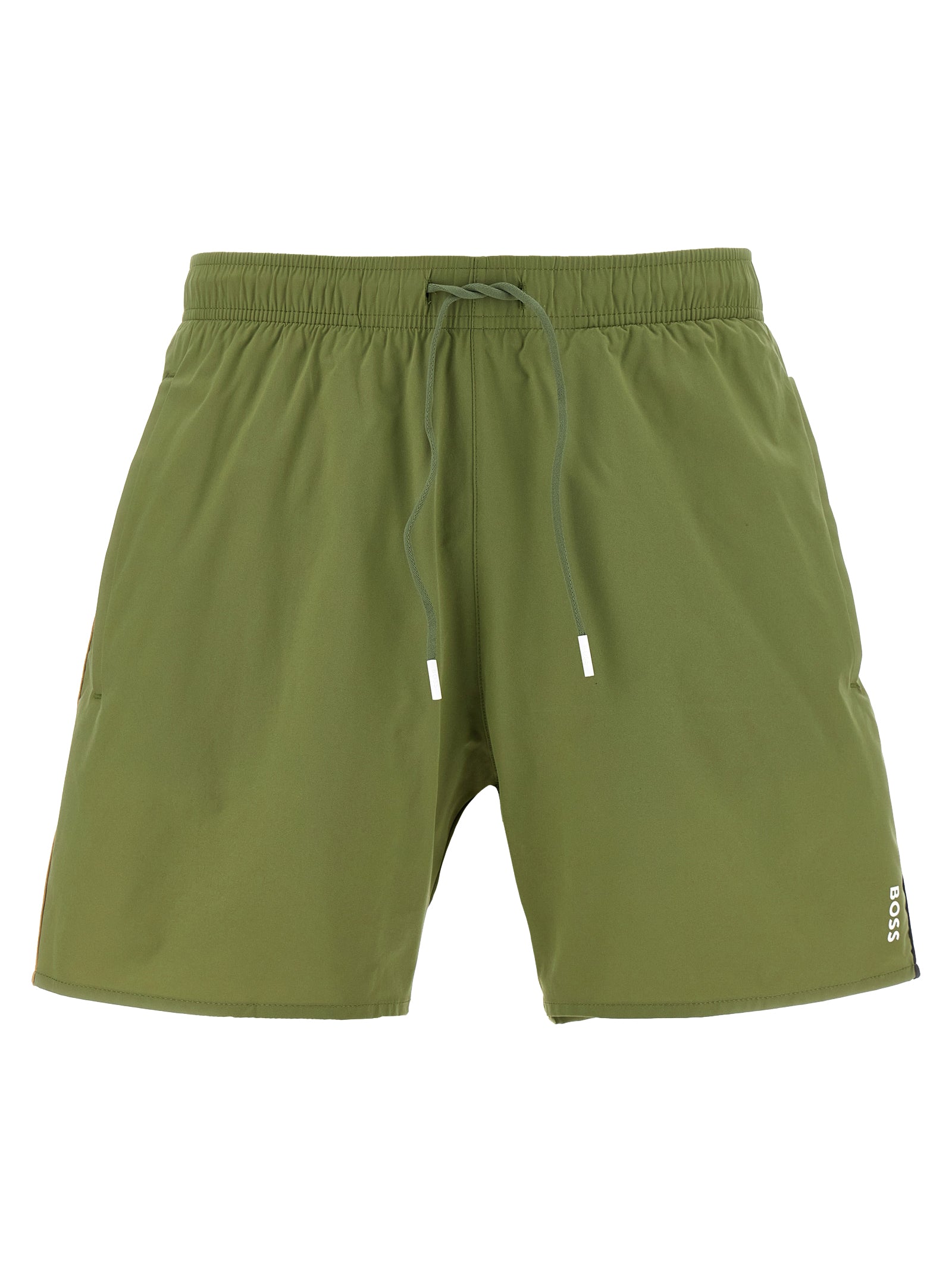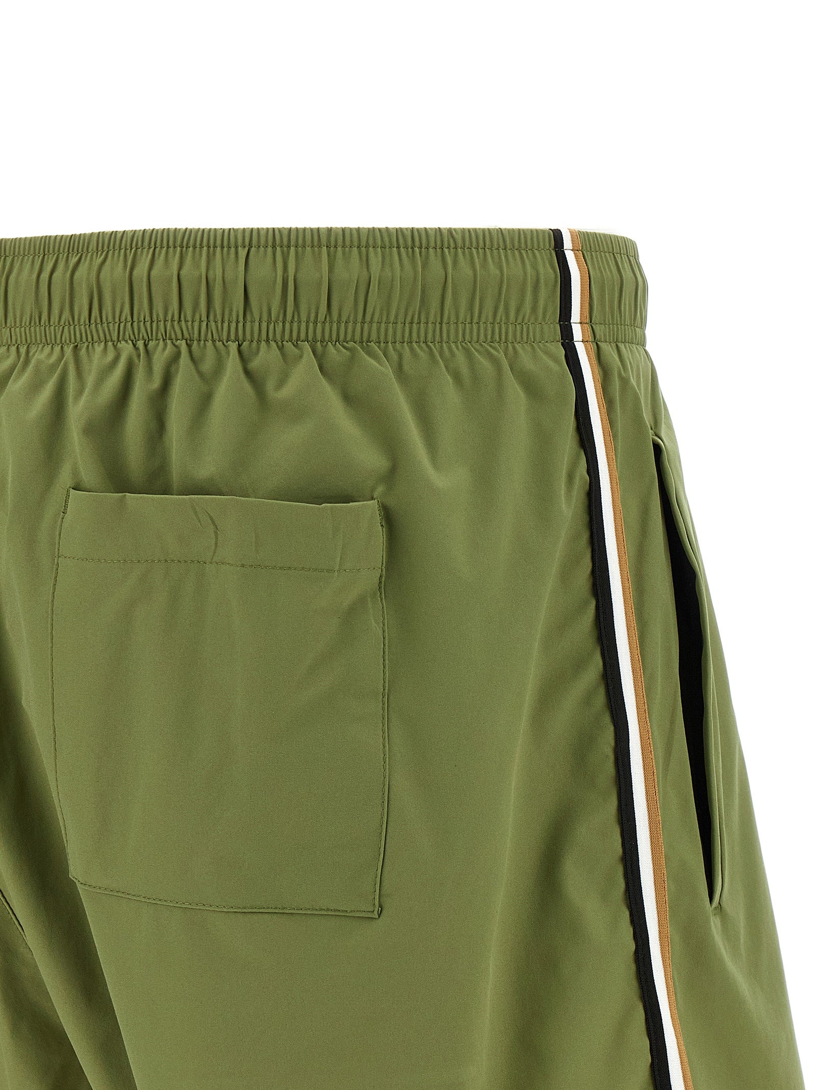 MAINEMENT «ICONIQUE» en tissu technique avec des détails en tricot latéral, modèle court, imprimé de logo avant, élastique à cordon réglable à la taille, poches, mémoires intérieures.