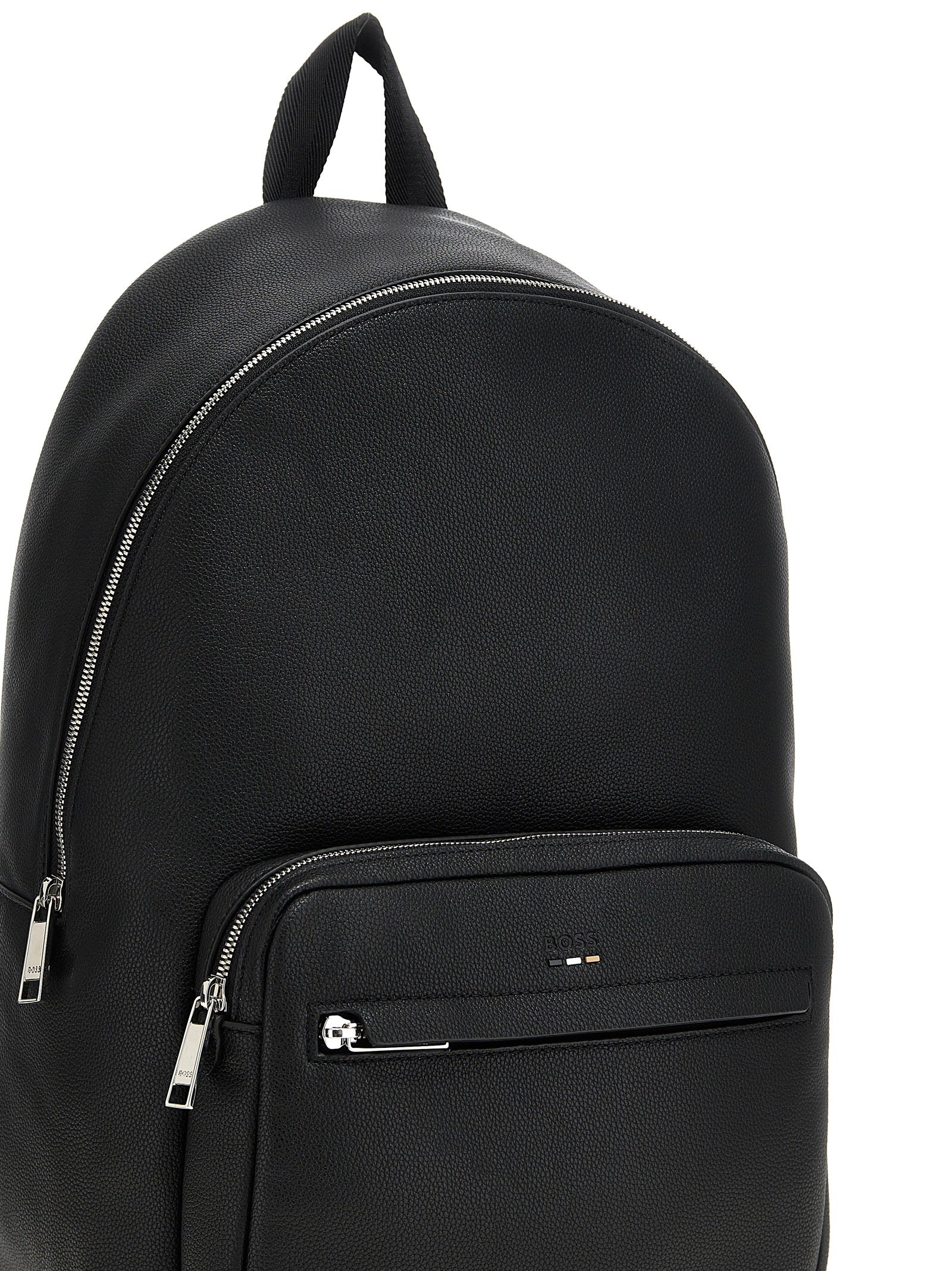 Sac à dos «Ray» en tissu à effets en cuir martelé, logo avant, fermeture à fermeture éclair, poignée supérieure, poche zippée avant, bretelles réglables, dossier rembourré.