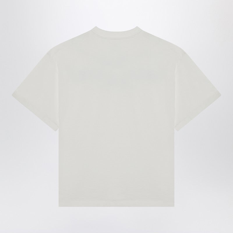 T-shirt en coton blanc par Jil Sander, avec de larges manches courtes et une impression de logo contrastée sur la poitrine.