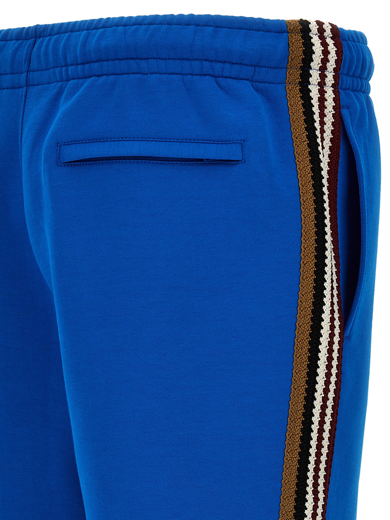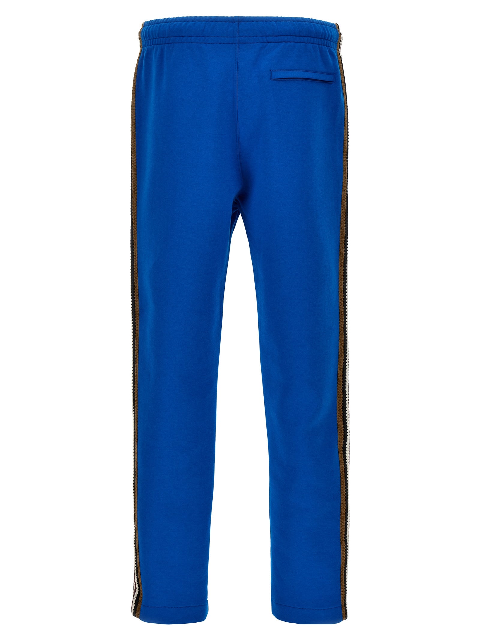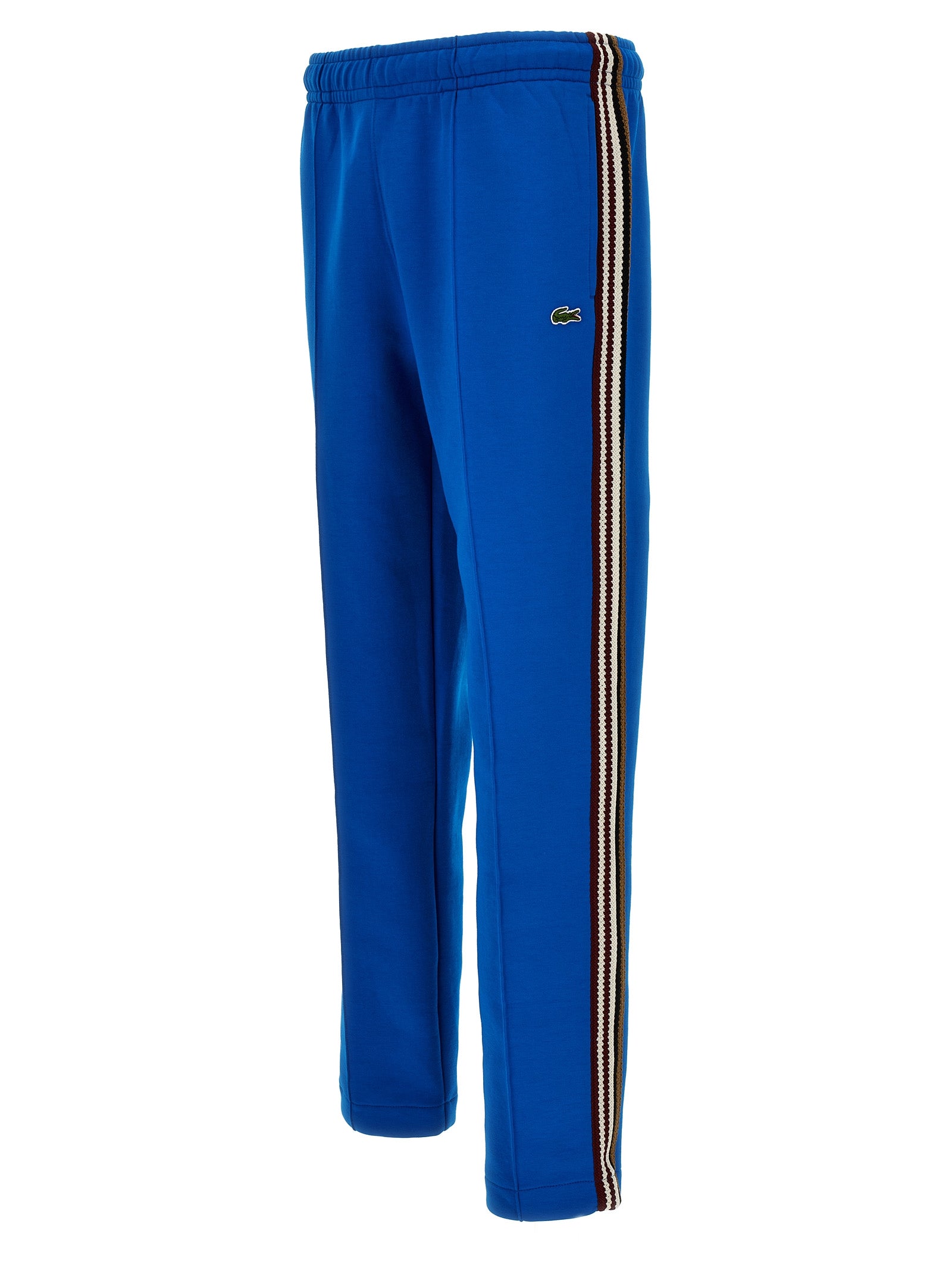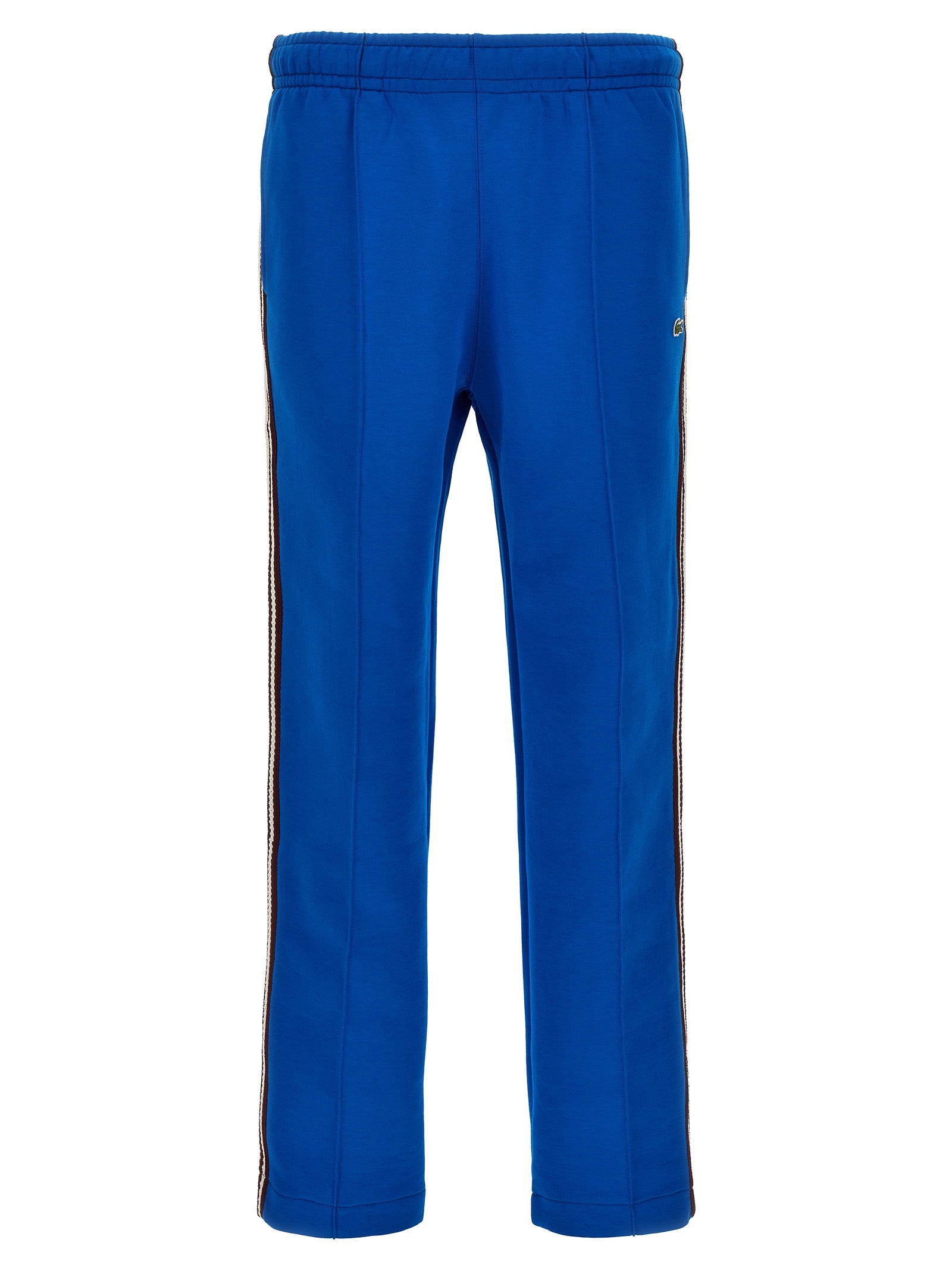 Joggeurs de coton avec pli central, ceinture élastique, patch de logo et garniture latérale contrastée.